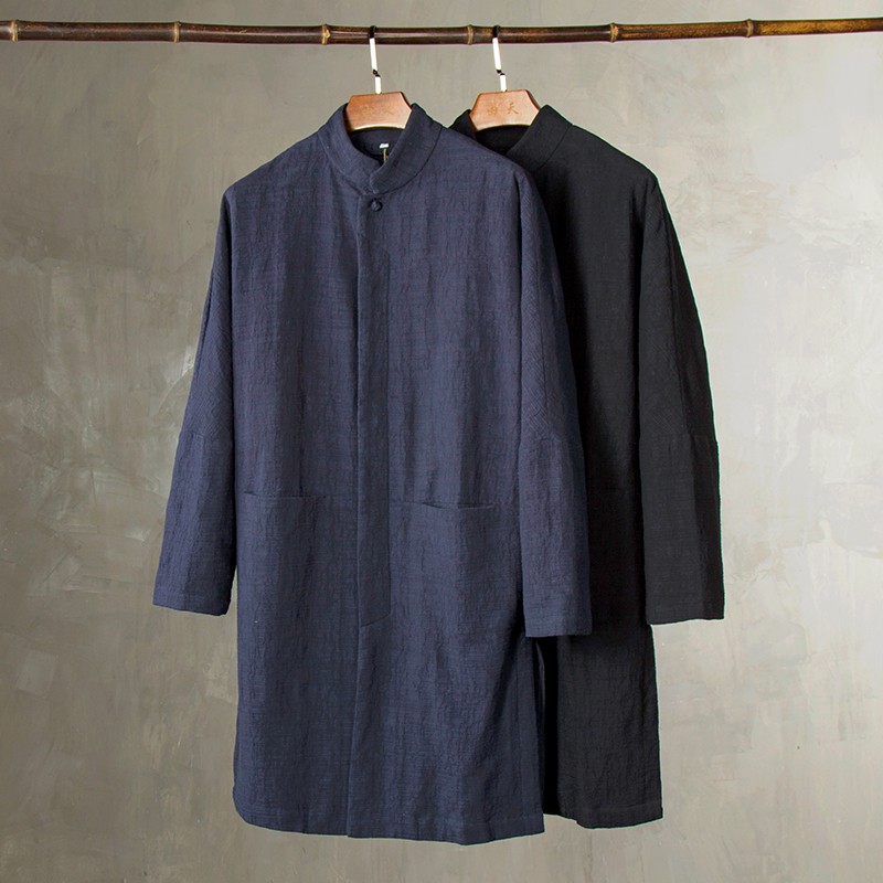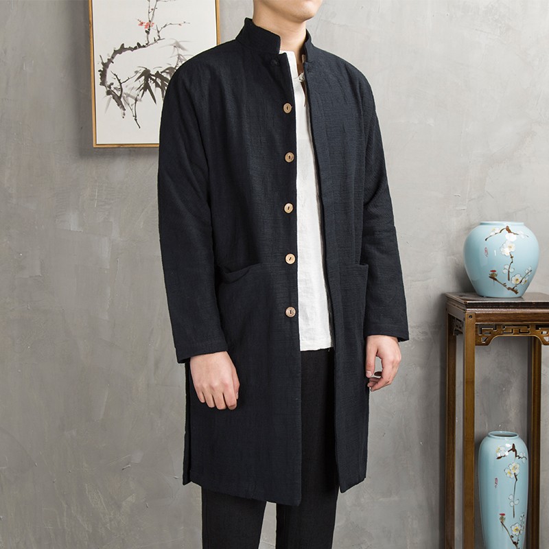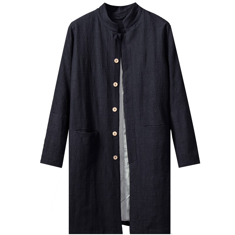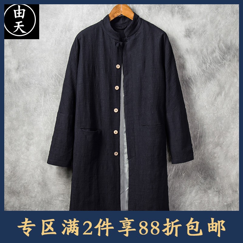 春秋季男士中国风唐装休闲外套中式立领复古风中年男装中长款风衣