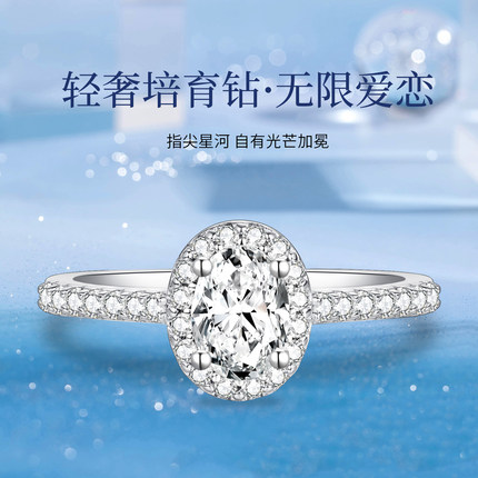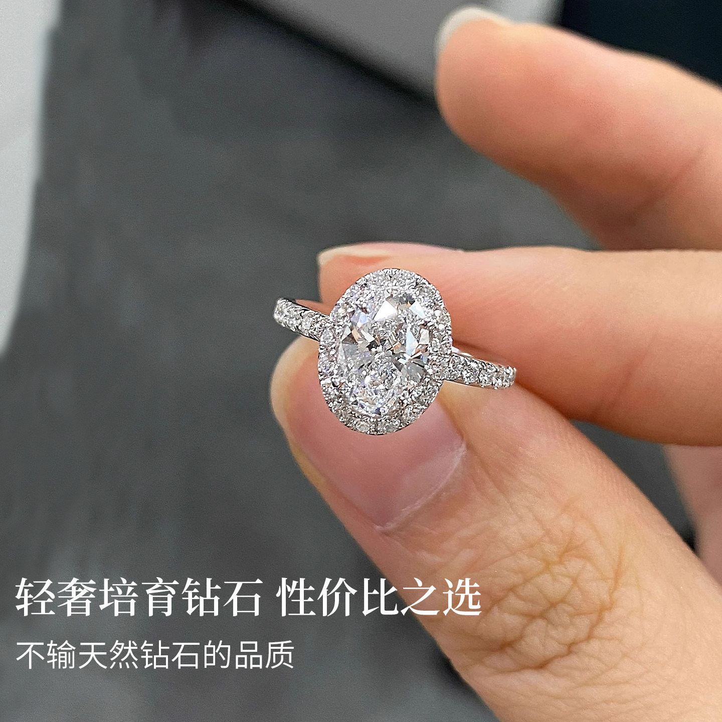 IGI人工培育钻石椭圆微镶18K金铂金1克拉珠宝裸钻求婚结婚钻戒女
