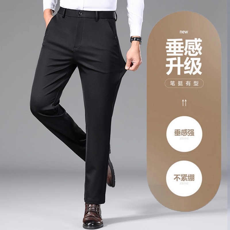 秋冬季裤子男士加绒加厚新款休闲裤中年直筒宽松男裤爸爸高腰西裤