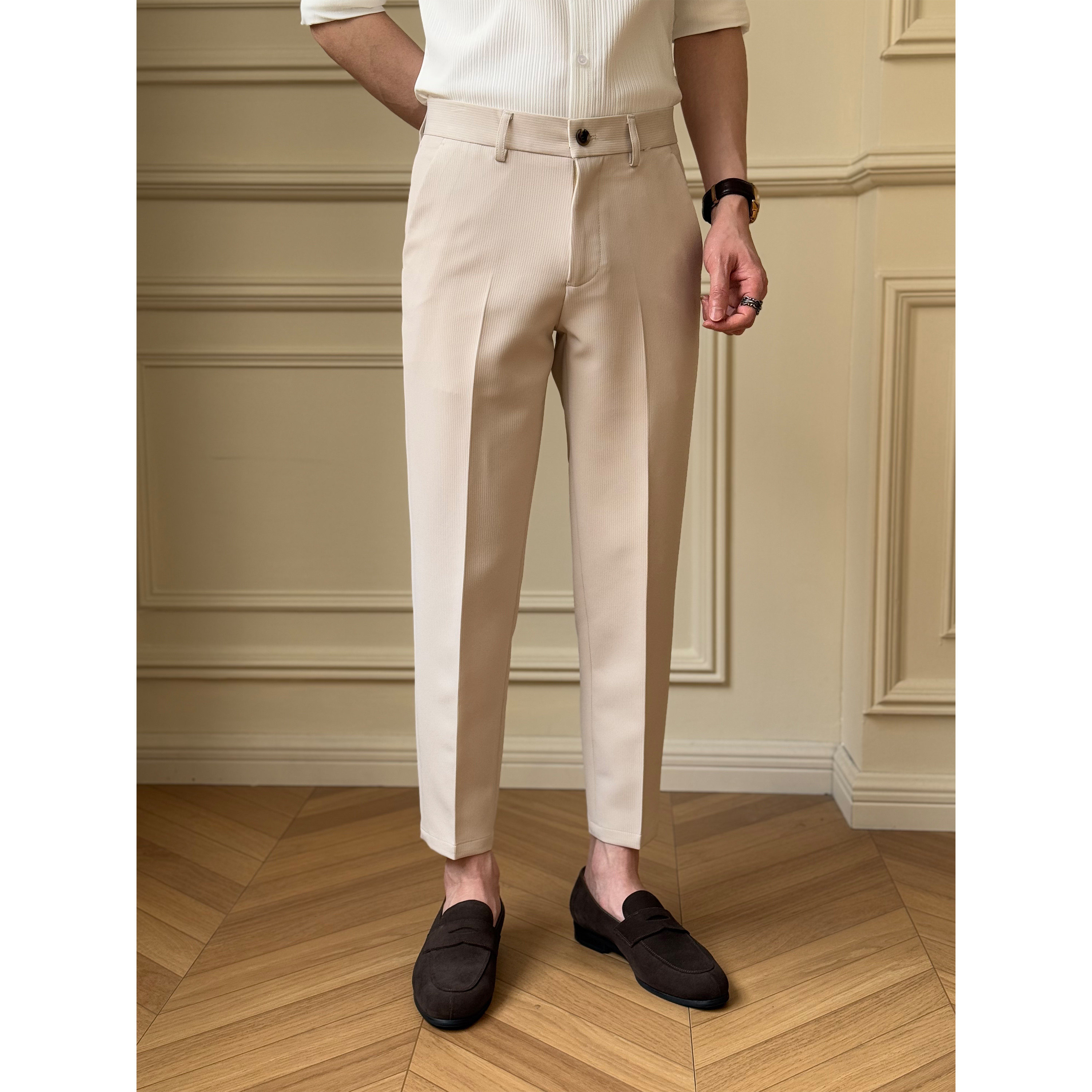 高品质九分裤西裤男夏季新款高级修身休闲裤潮流痞帅商务免烫裤子