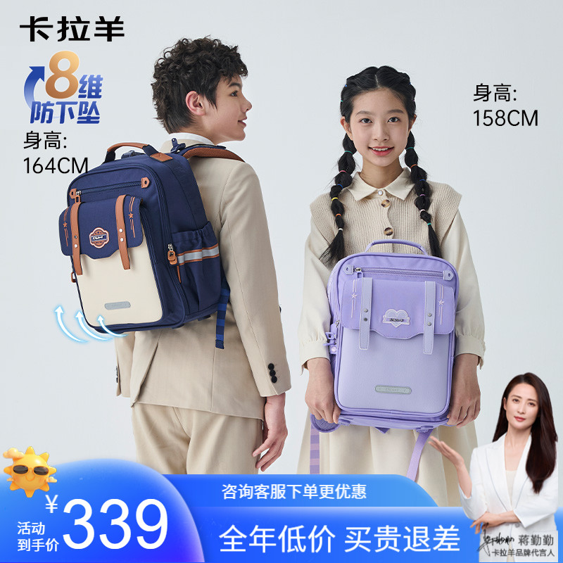 卡拉羊1-4-6年级小学生云朵书包轻便减负防下坠双肩包大容量背包