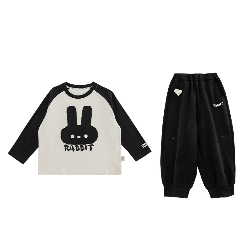 幼悠 男童2025新款长袖圆领兔子t恤束脚防风长裤秋季时尚儿童套装
