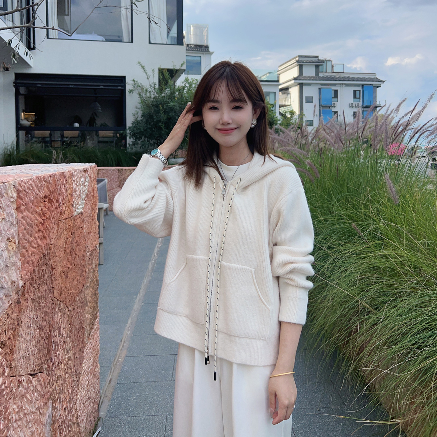 小小家小个子连帽针织毛衣开衫