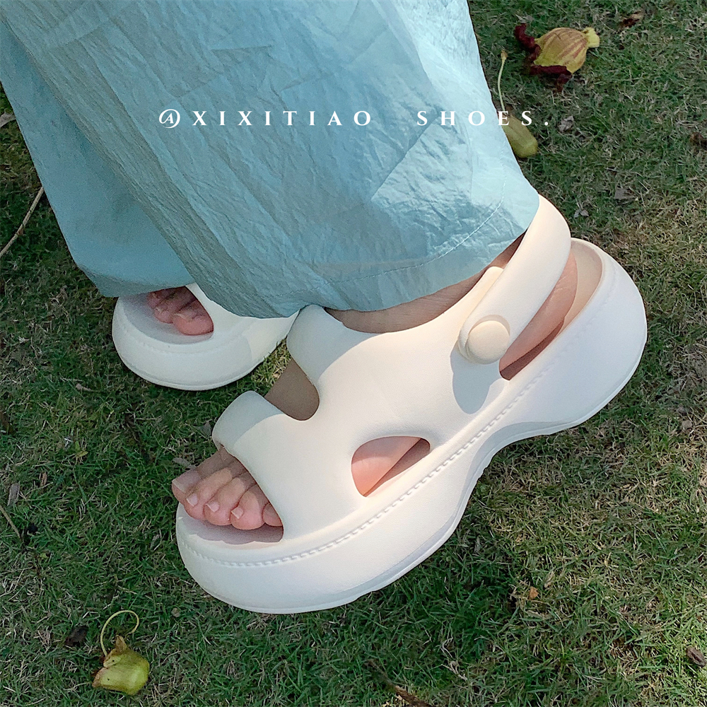 户外踩屎感厚底时尚百搭松糕凉鞋夏季女士海边防滑舒适网红沙滩鞋