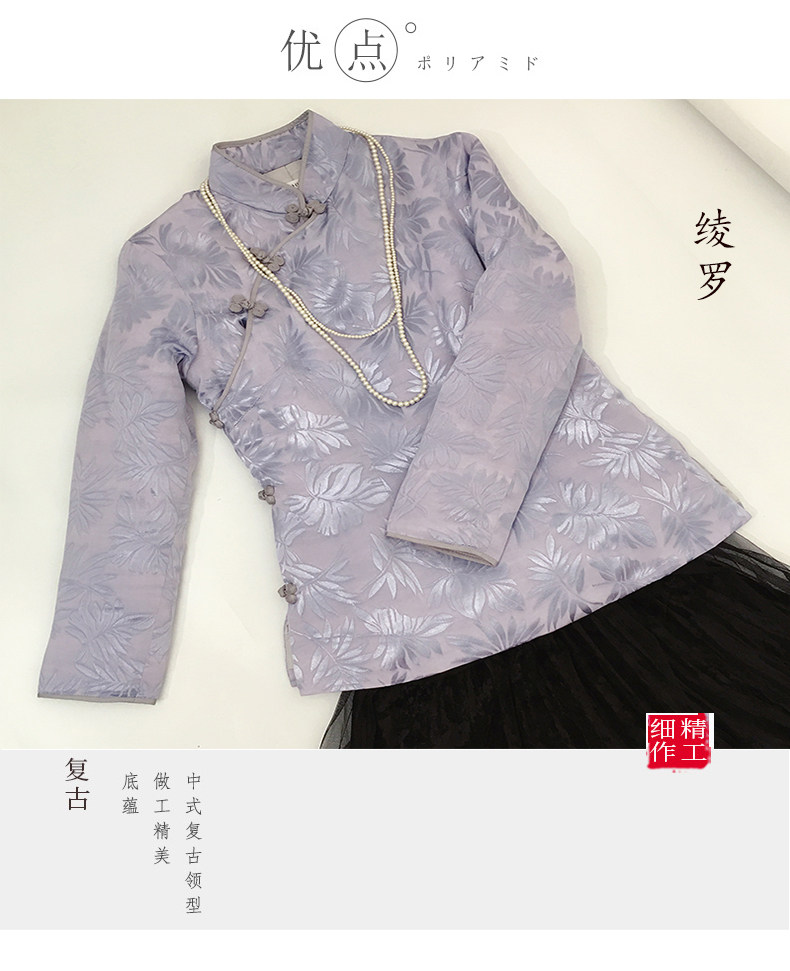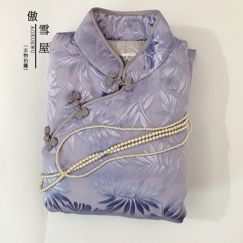 中国风盘扣夹棉长袖复古修身旗袍上衣 改良日常高端唐装棉衣秋冬