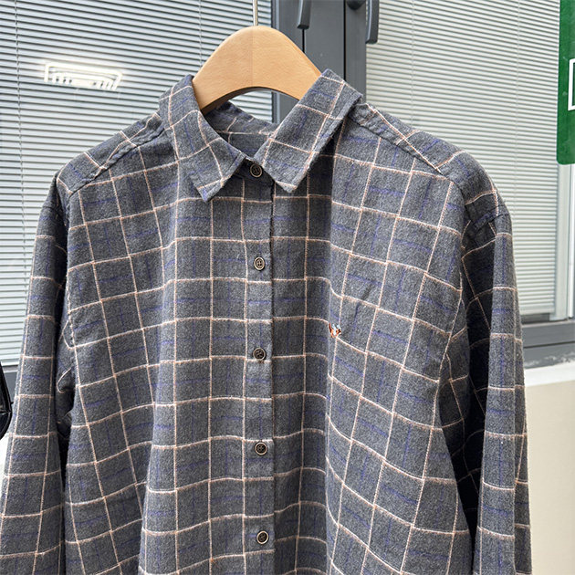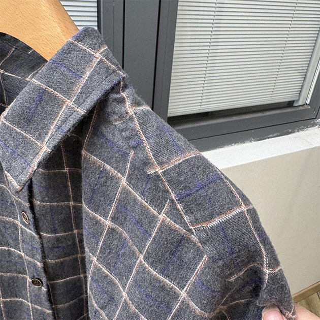 欧韩洋气好穿厚实磨毛衬衫纯棉女装内搭叠穿绒面格子衬衣刺绣上衣