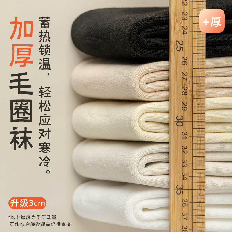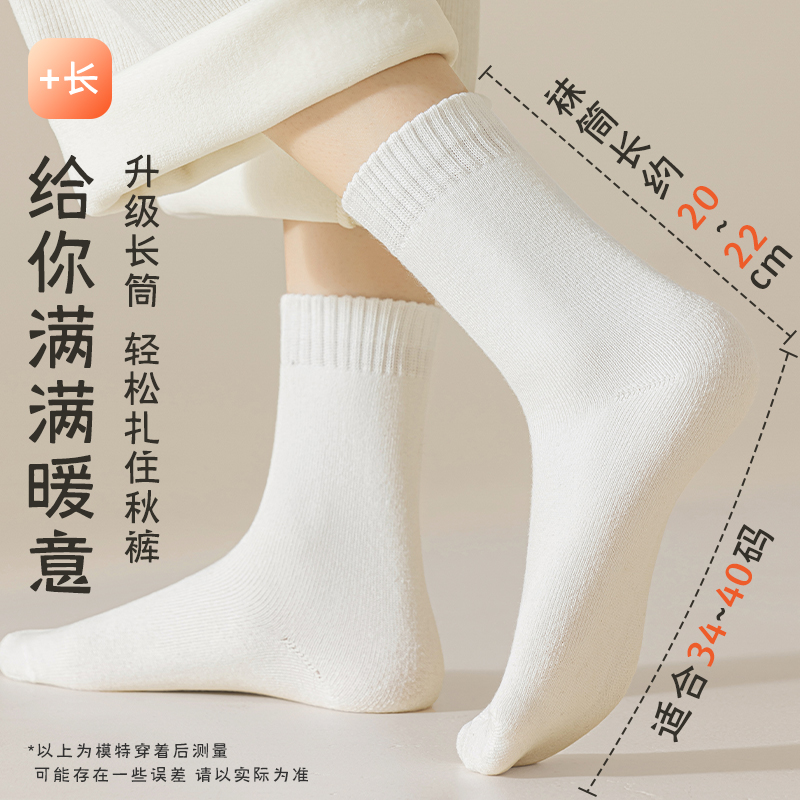 诸暨袜子女中筒袜冬季纯棉白色加厚加绒保暖棉袜秋冬黑色月子长袜