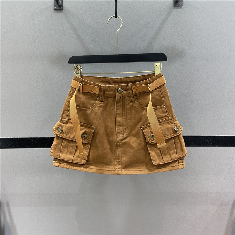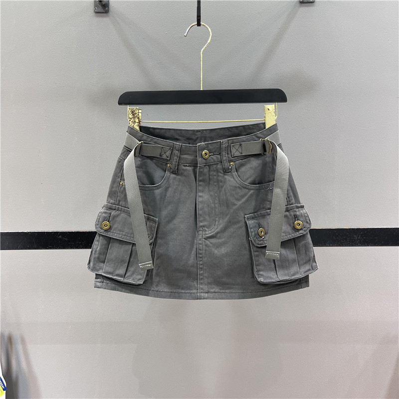 【清仓不退换】工装辣妹牛仔短裙女防走光高腰A字包臀半身裙