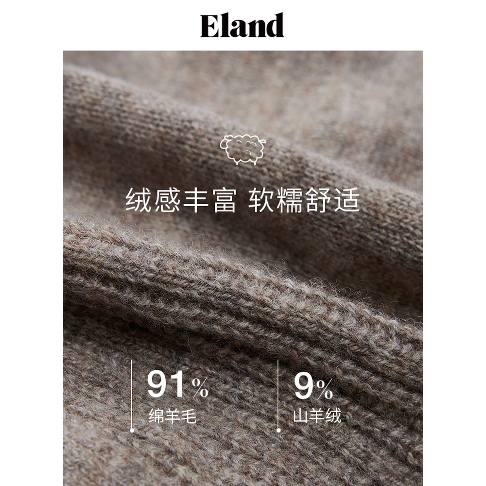 ELAND绵羊毛+山羊绒圆领针织开衫