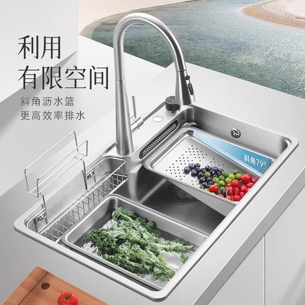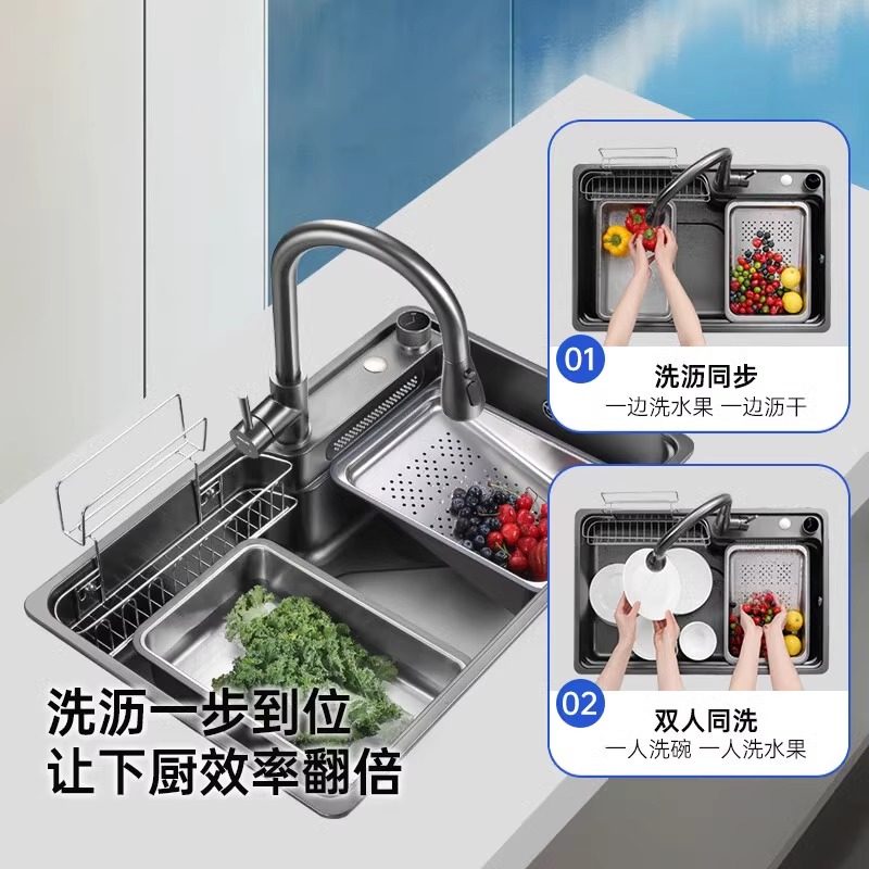 欧琳304不锈钢瀑布水槽大单槽纳米飞雨洗菜盆家用厨房大单槽水池