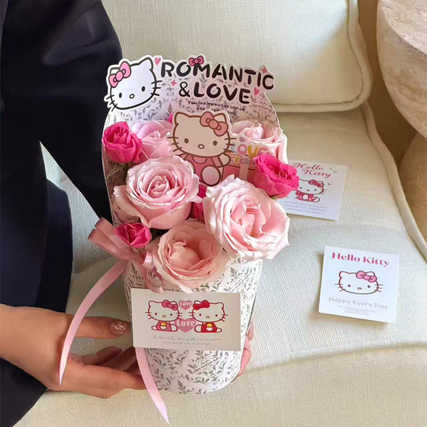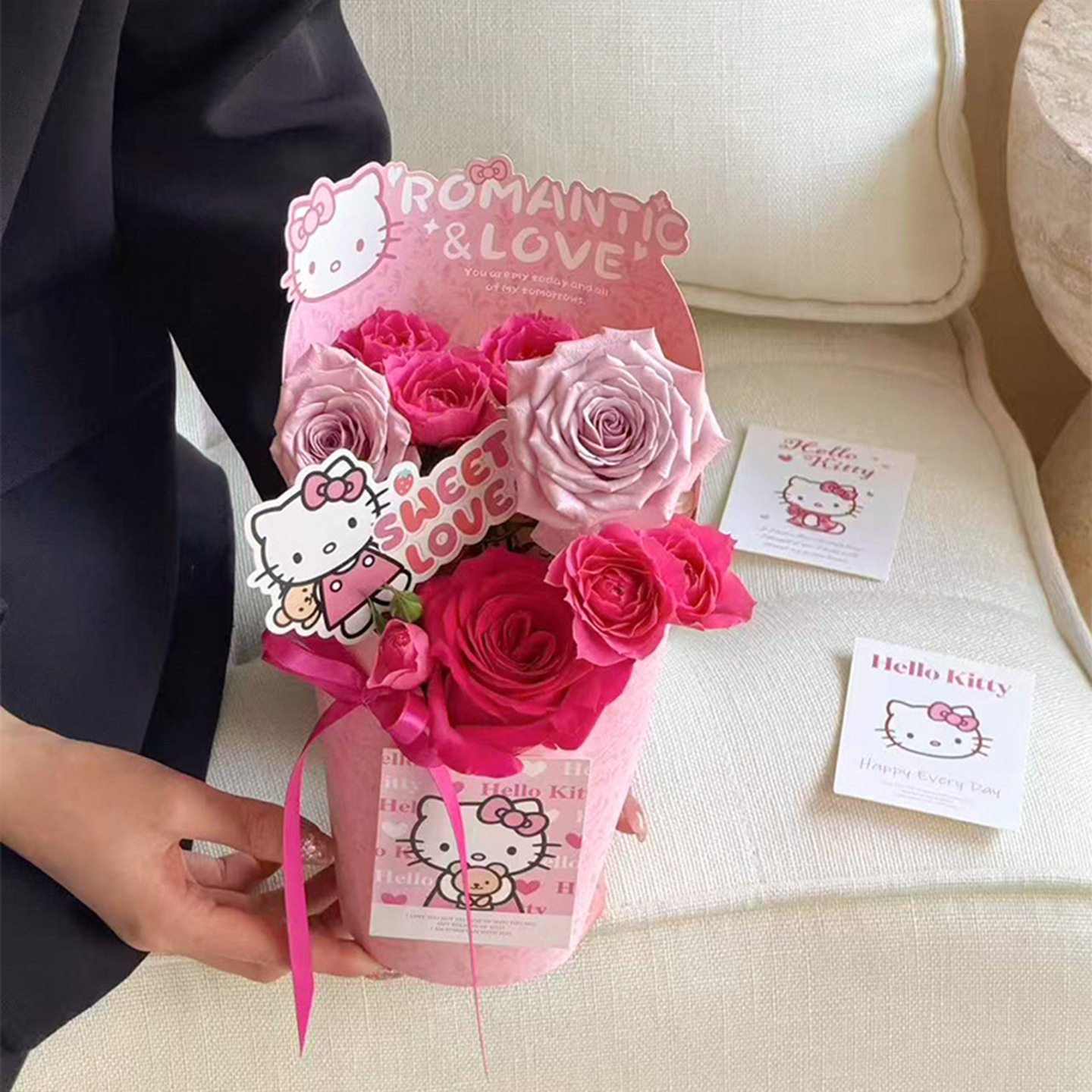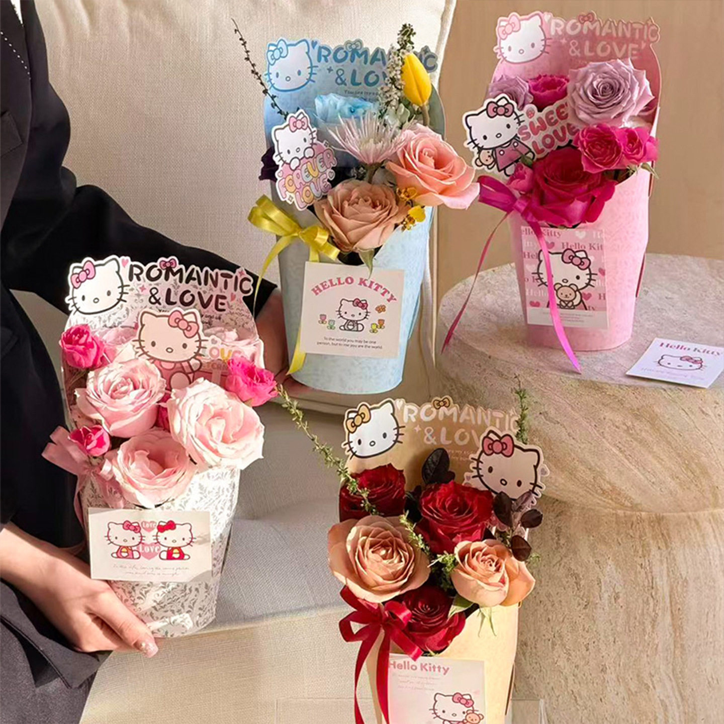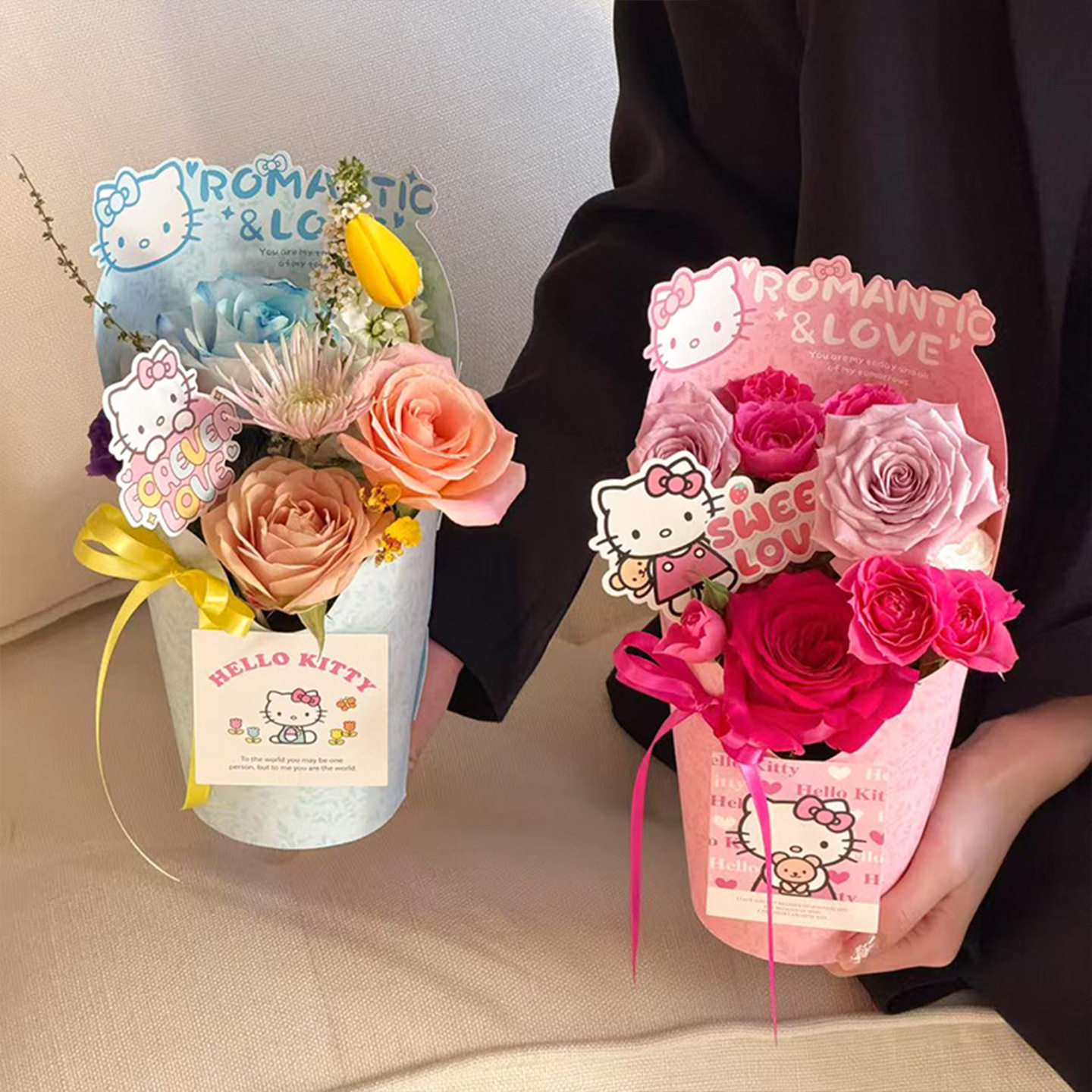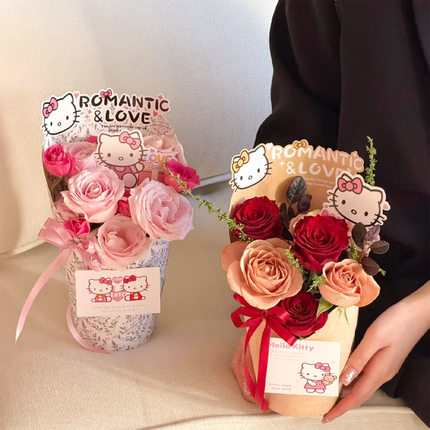 新款甜心KT圆形花盒冰淇淋鲜花束包装礼盒花店手工插花diy材料