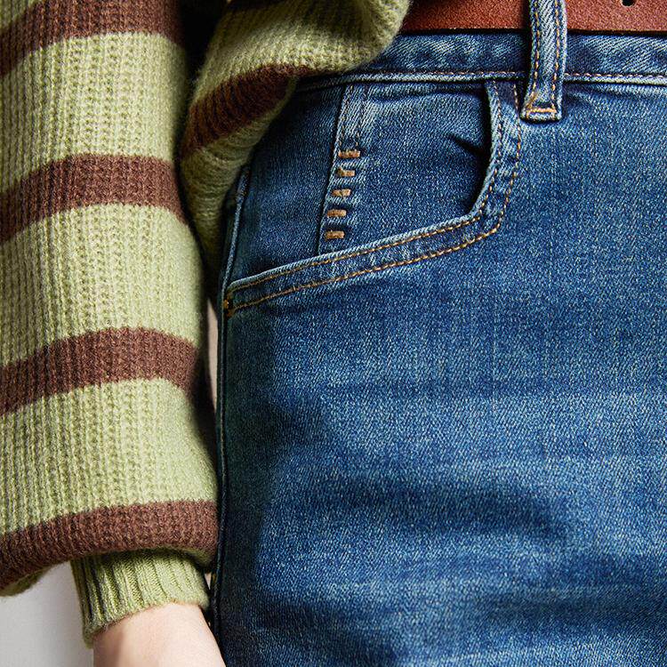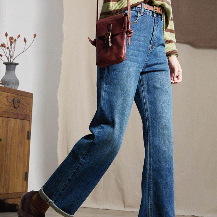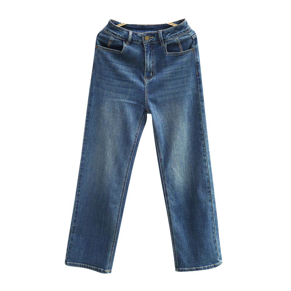 谷家 水洗蓝文艺百搭牛仔直筒裤 柔软舒适高腰显瘦烟管裤长裤子女
