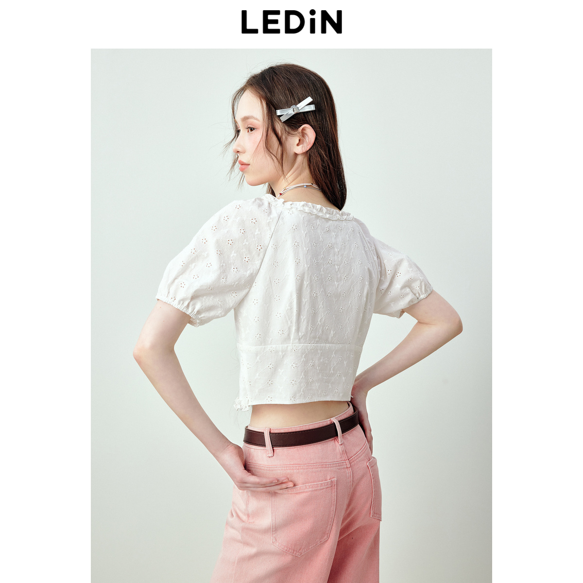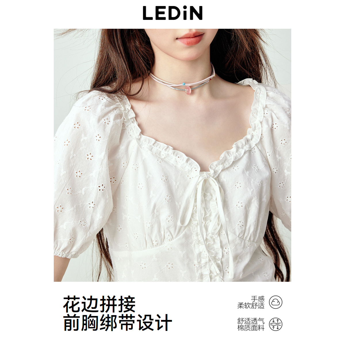 【100%棉】乐町法式甜美浪漫感雪纺衫女夏季新款绑带设计上衣
