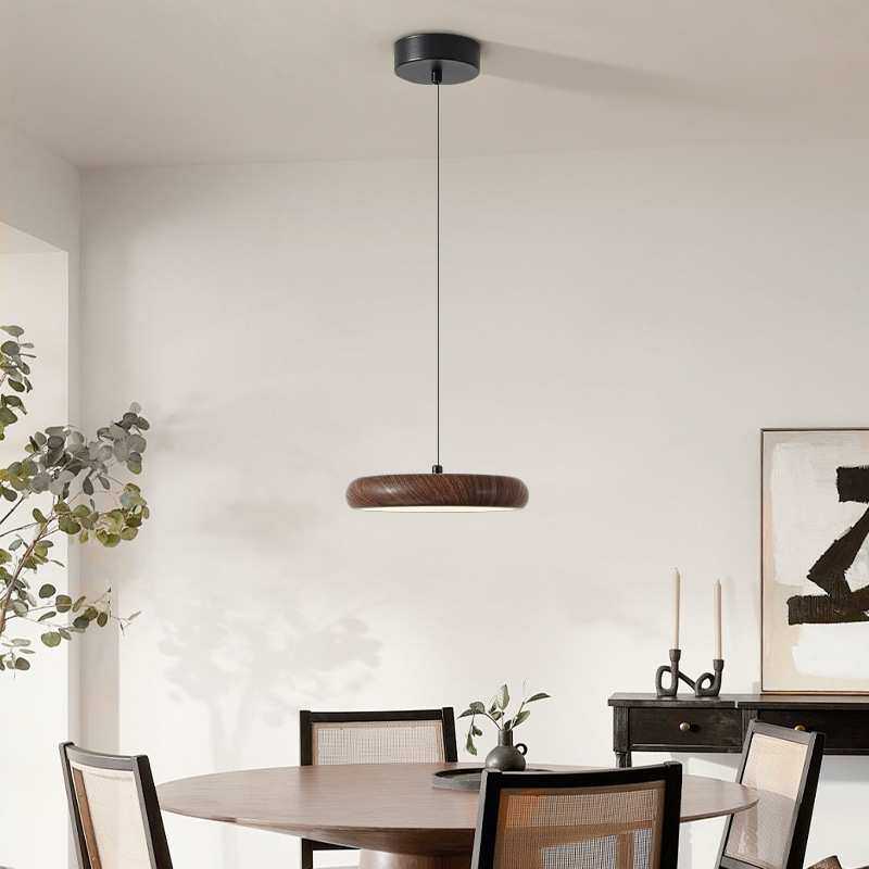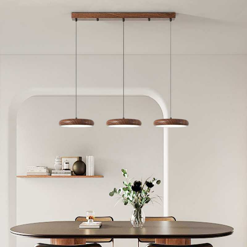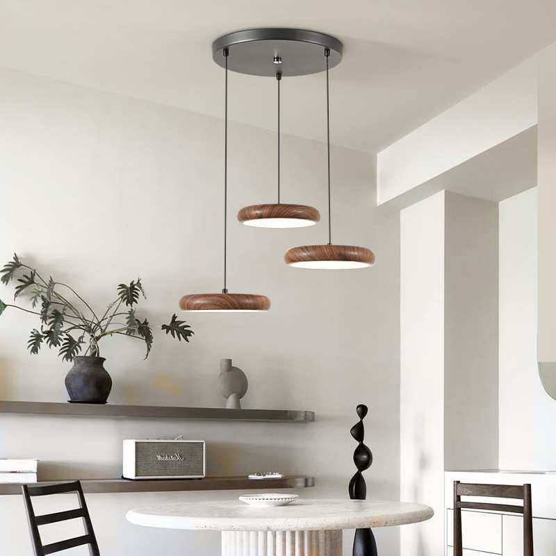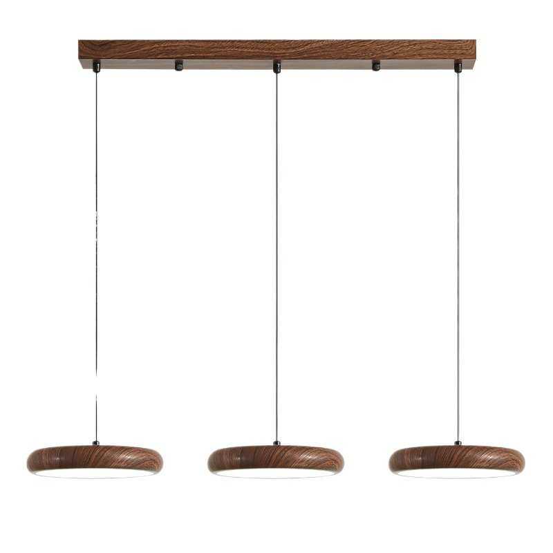 中古风复古餐厅吊灯胡桃木纹新中式三头饭厅餐桌灯全光谱护眼灯具