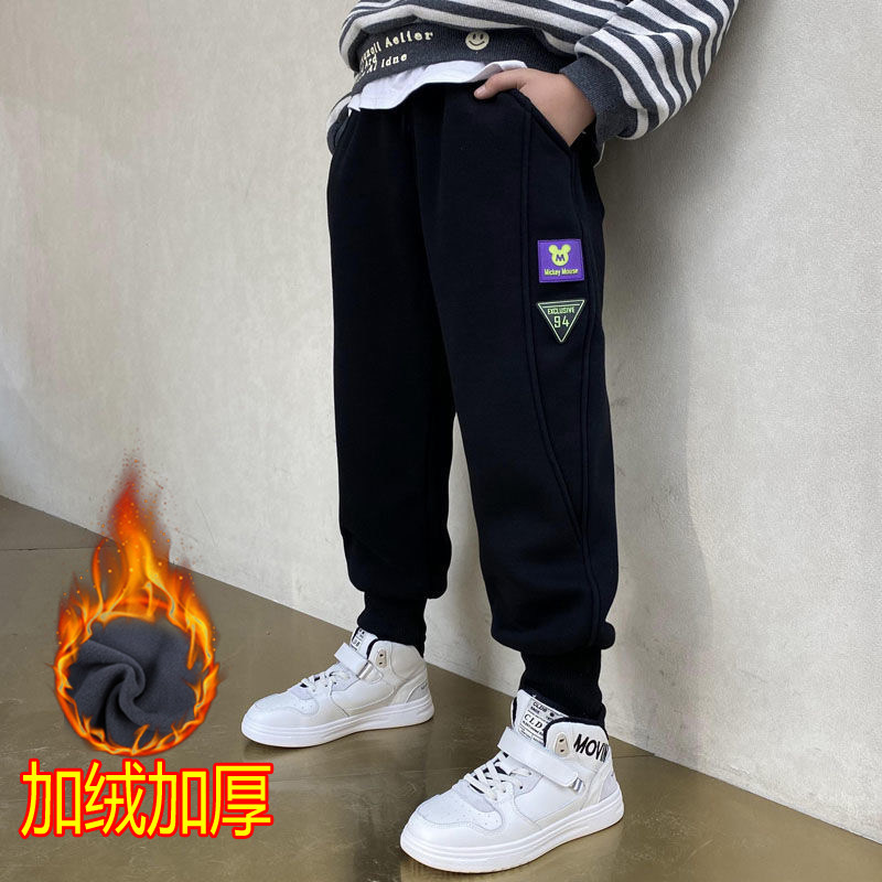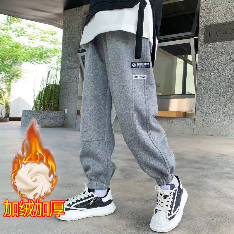 男童秋冬季加绒裤子中大童一体绒休闲裤2025新款卫裤儿童冬款长裤
