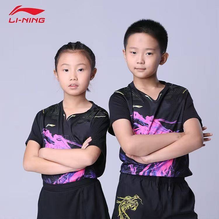 李宁儿童乒乓球服国家队龙服男女童速干透气运动比赛训练短袖短裤