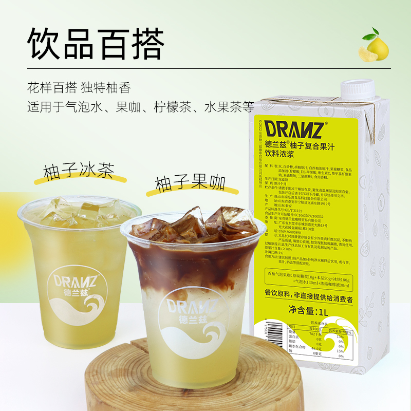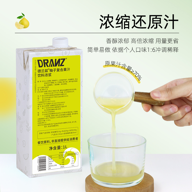 德兰兹柚子汁复合白柚汁浓缩果汁柚C美式调酒咖啡特调奶茶店专用