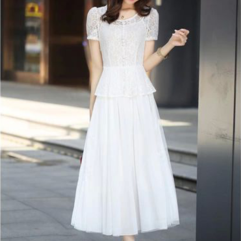 短袖蕾丝修身显瘦度假沙滩中长网纱连衣裙两件套装女春夏2025新款