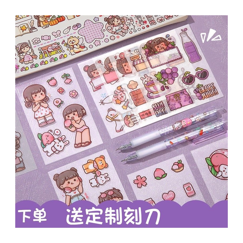小麻薯100张不重复手账贴纸套装透明防水装饰P水杯小图案卡通可爱