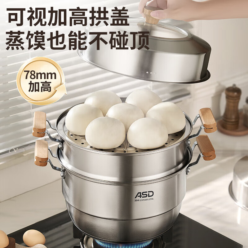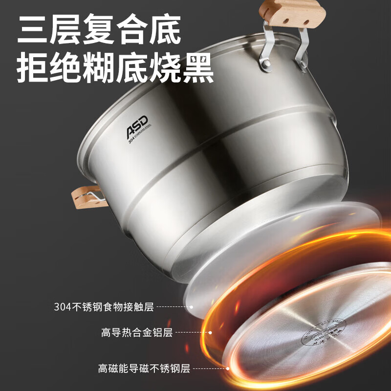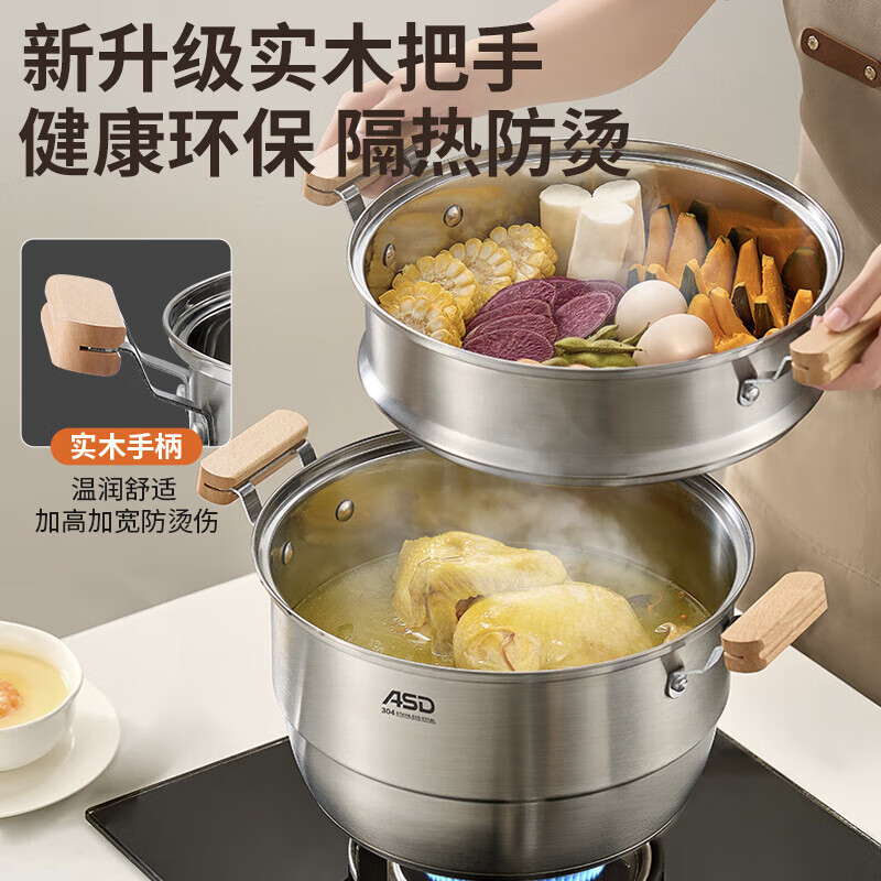 爱仕达蒸锅家用蒸笼食品级不锈钢三层加厚加大电磁炉煤气灶汤锅