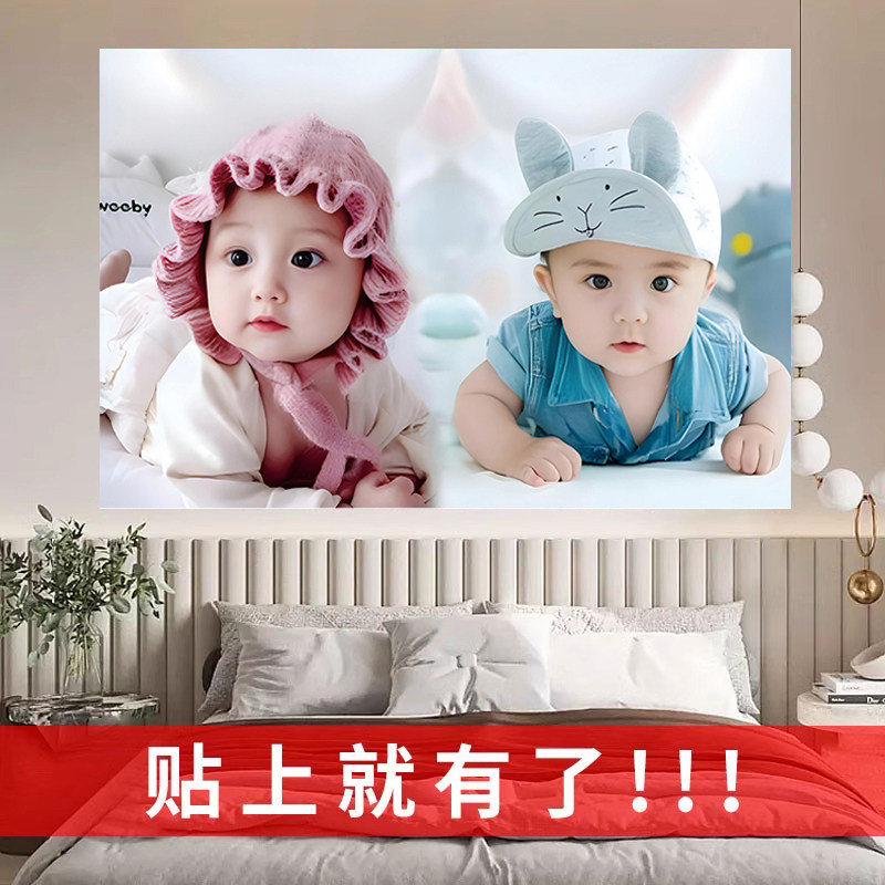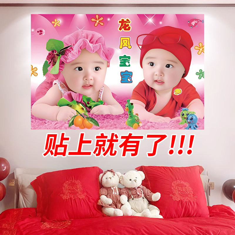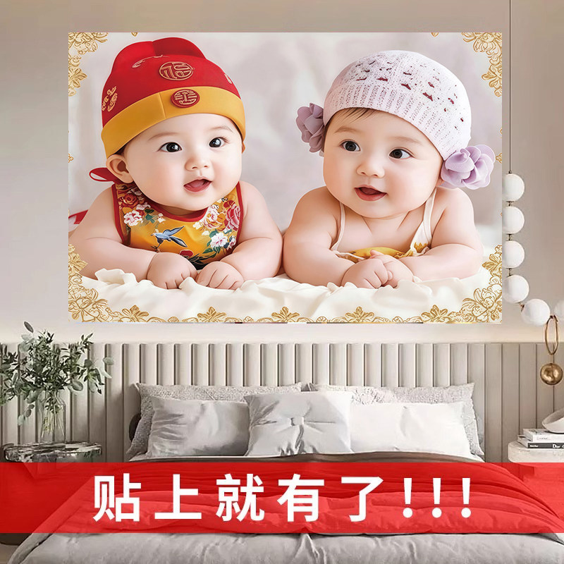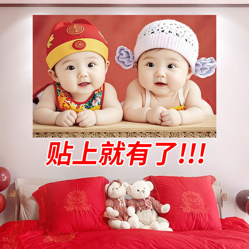 宝宝画报墙贴画年画娃娃送子图求子助备孕卧室床头龙凤胎宝宝海报
