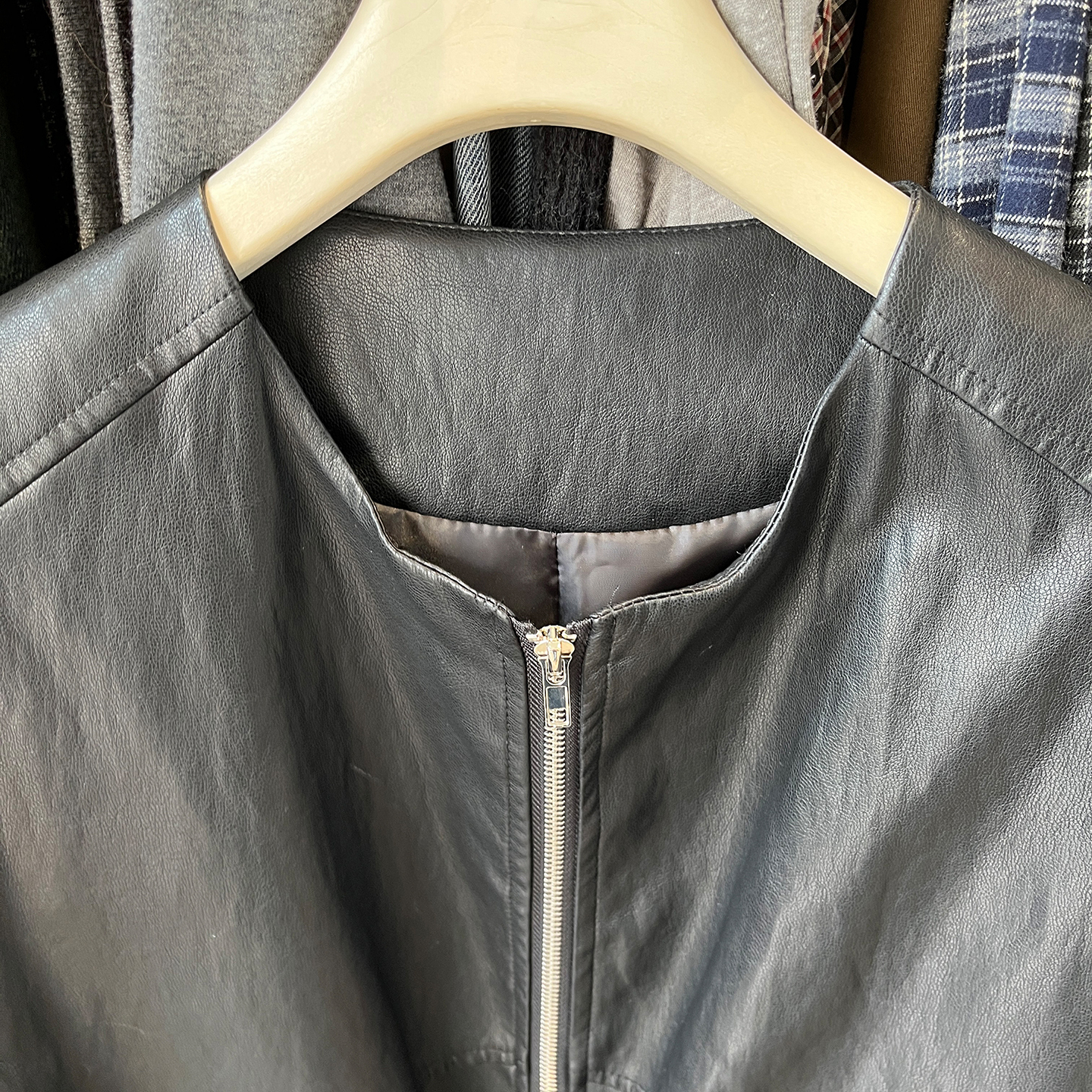 HELLO十三行女装2025新款秋季韩系背心外套女圆领无袖皮衣马甲女