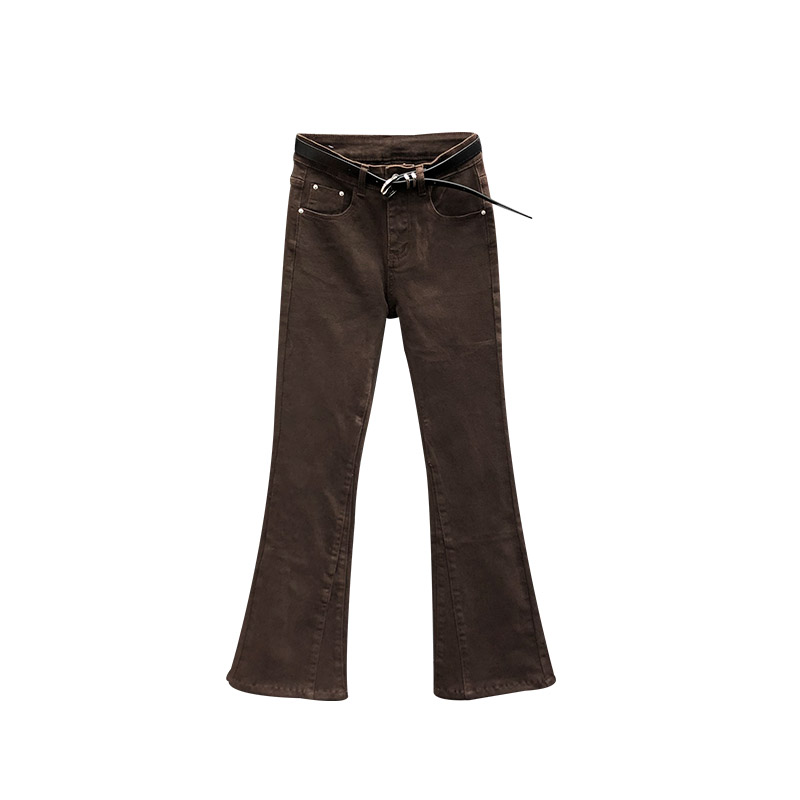 欧货咖啡色高腰显瘦微喇牛仔裤女