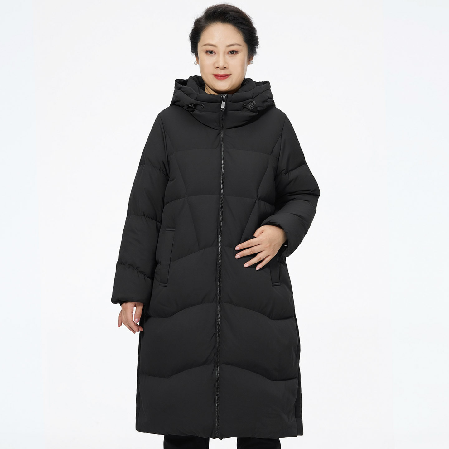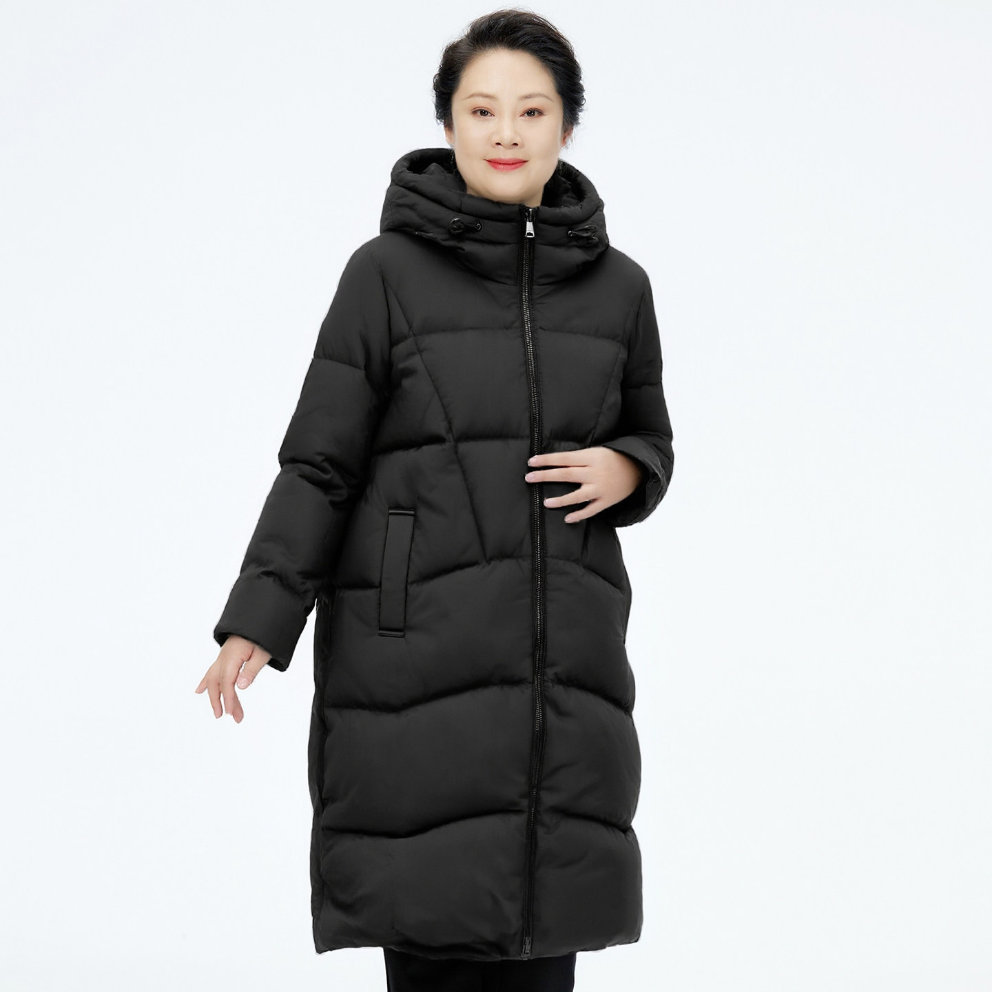 胖太太大码女装冬季新品长款羽绒服外套时尚显瘦连帽425411410