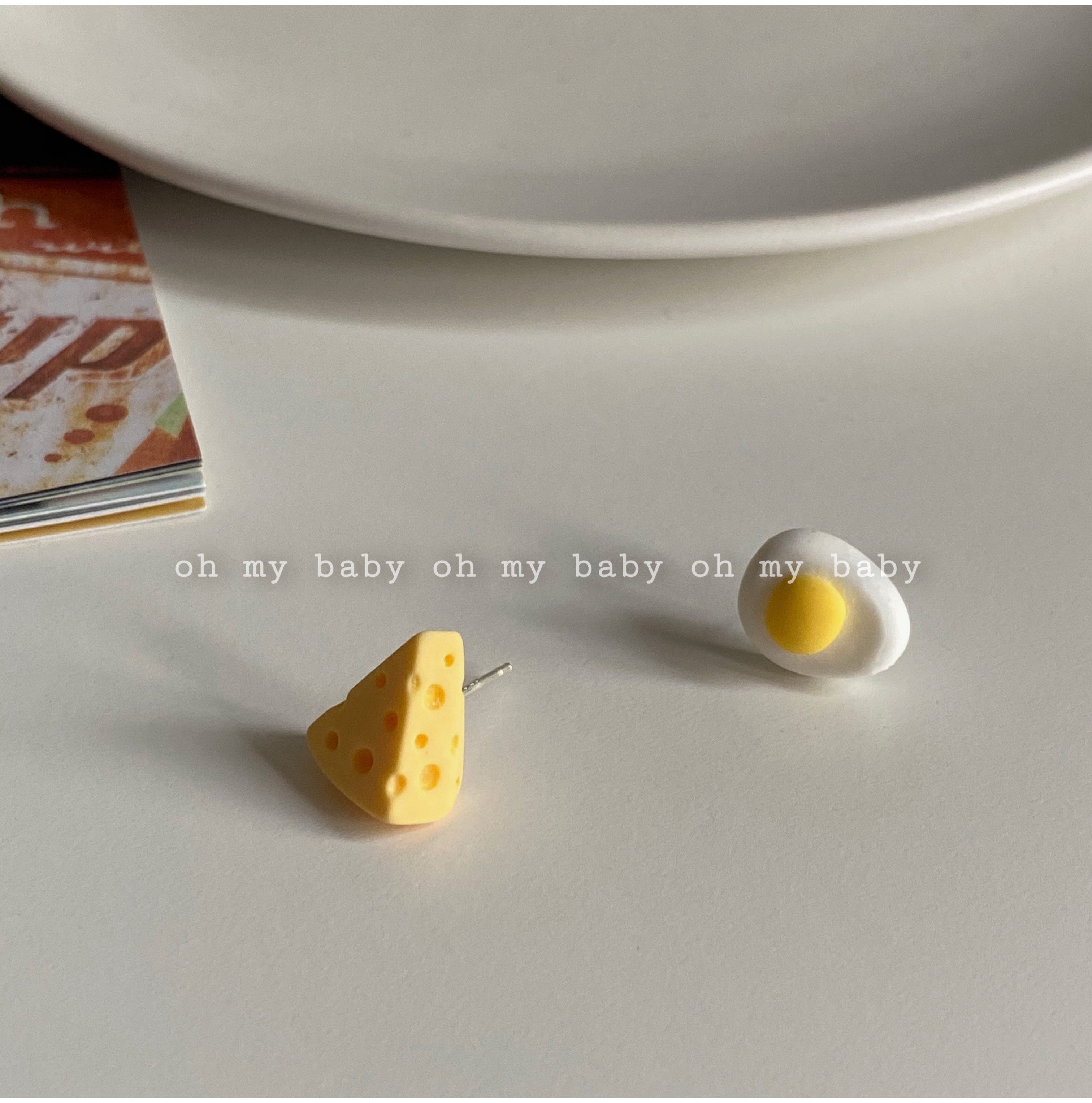 没有耳洞也能戴 不对称奶酪和煎蛋耳钉耳夹创意小众可爱学生 包邮