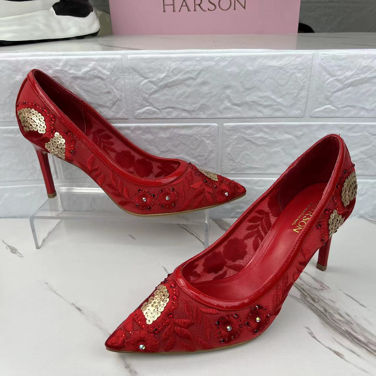 专柜正品哈森牛皮女鞋高跟时装鞋