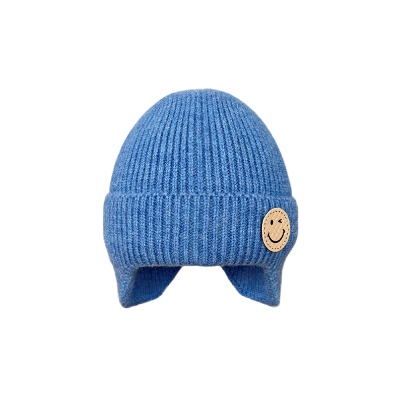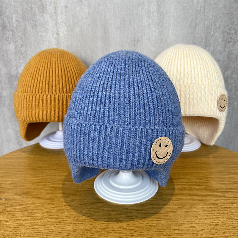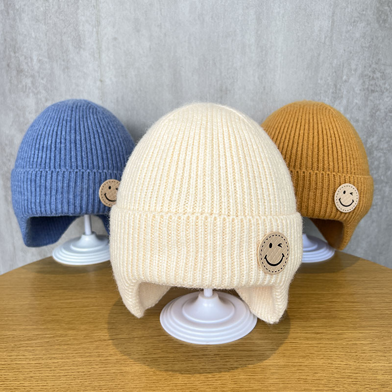 韩系笑脸儿童帽子秋冬款针织护耳帽宝宝保暖休闲套头男女童毛线帽