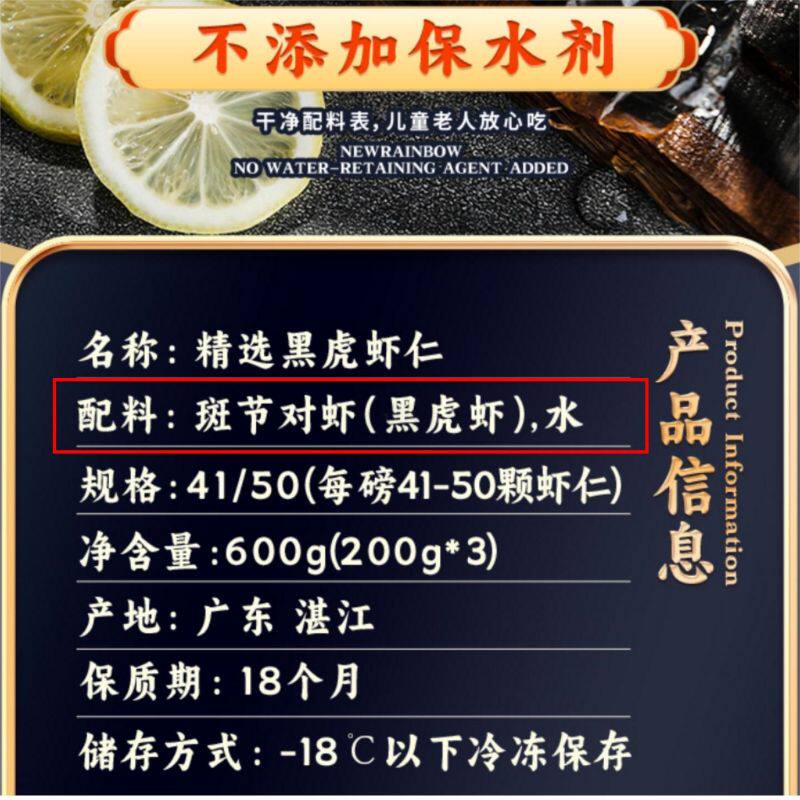 【新虹宝】精选黑虎虾仁600g去虾线虾仁冰鲜大虾仁冰鲜虾仁冷冻