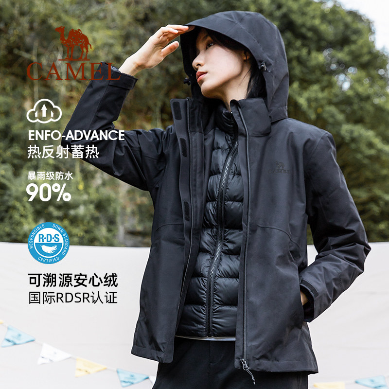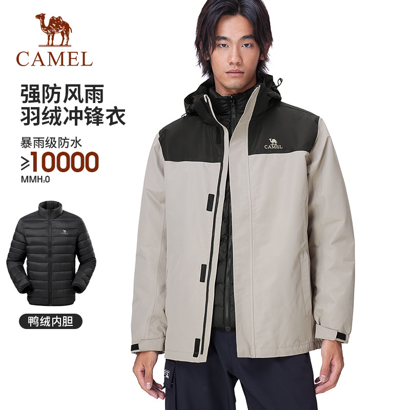 骆驼户外冲锋衣男女羽绒内胆三合一可拆卸保暖加厚冬季外套羽绒服