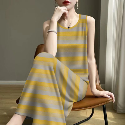 广州十三行高端爆款~印花减龄遮肚妈妈装背心吊带中长款连衣裙女