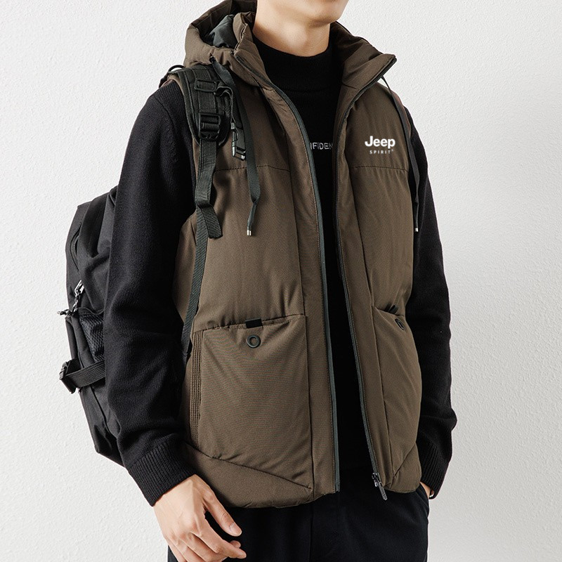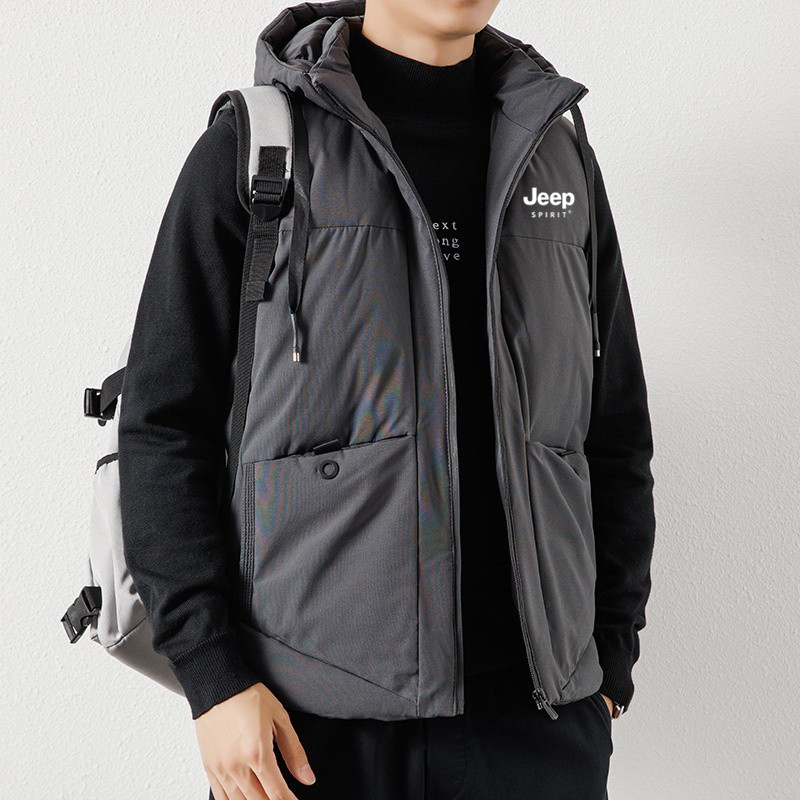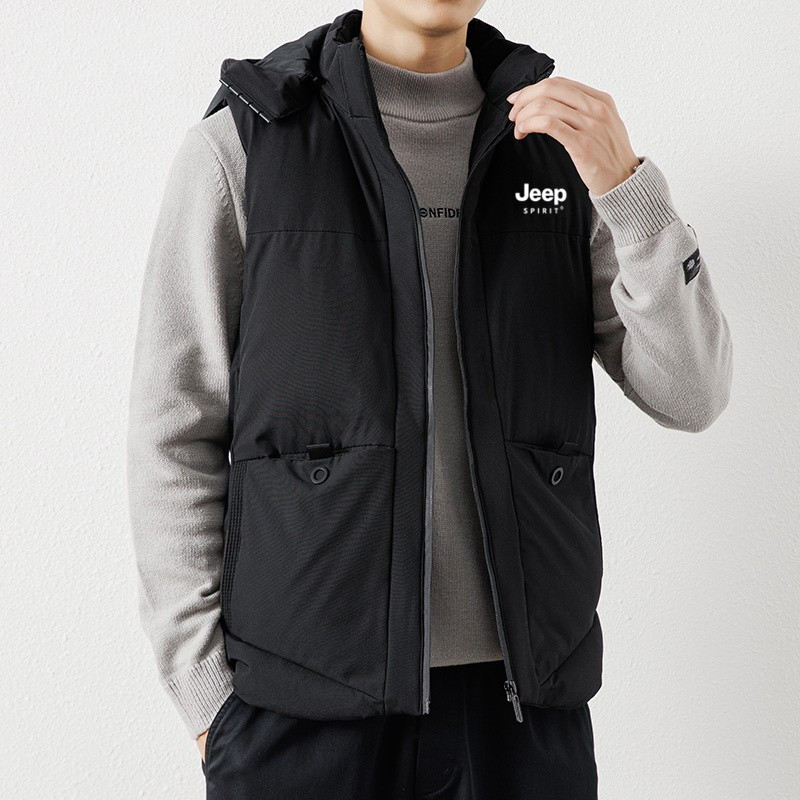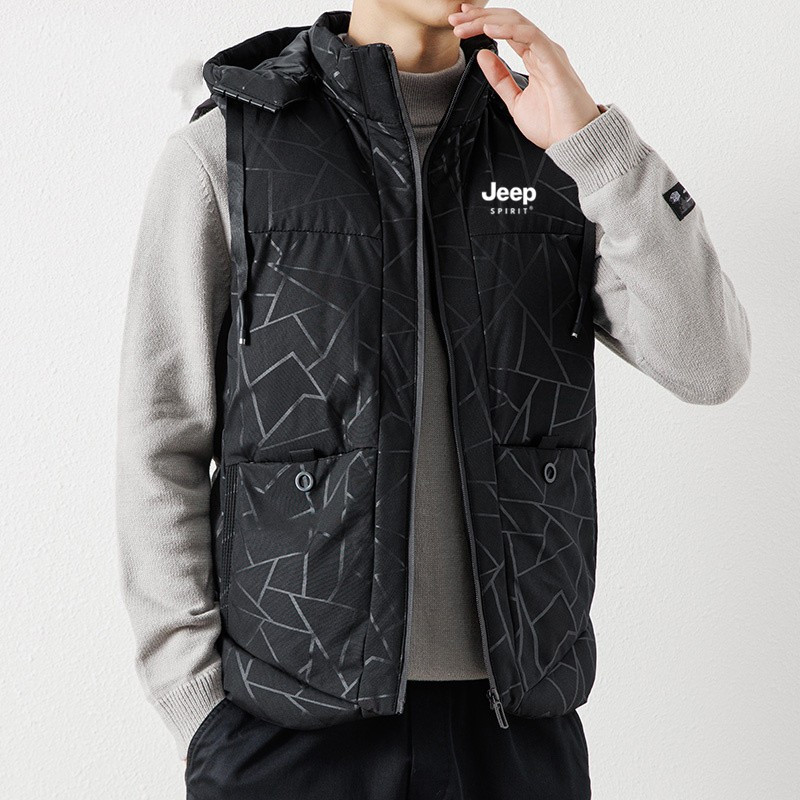 JEEP SPIRI吉普新款棉马甲男秋季加肥加大码无袖坎肩宽松连帽外套