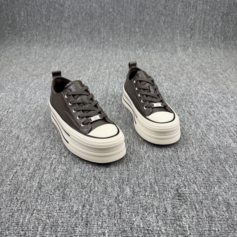 欧洲站欧货真皮女鞋2025秋季新款中跟厚底松糕鞋系带休闲运动板鞋