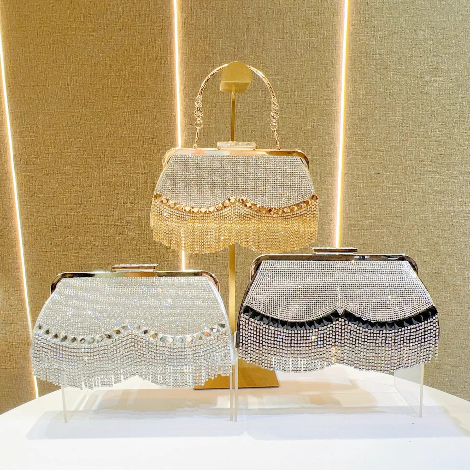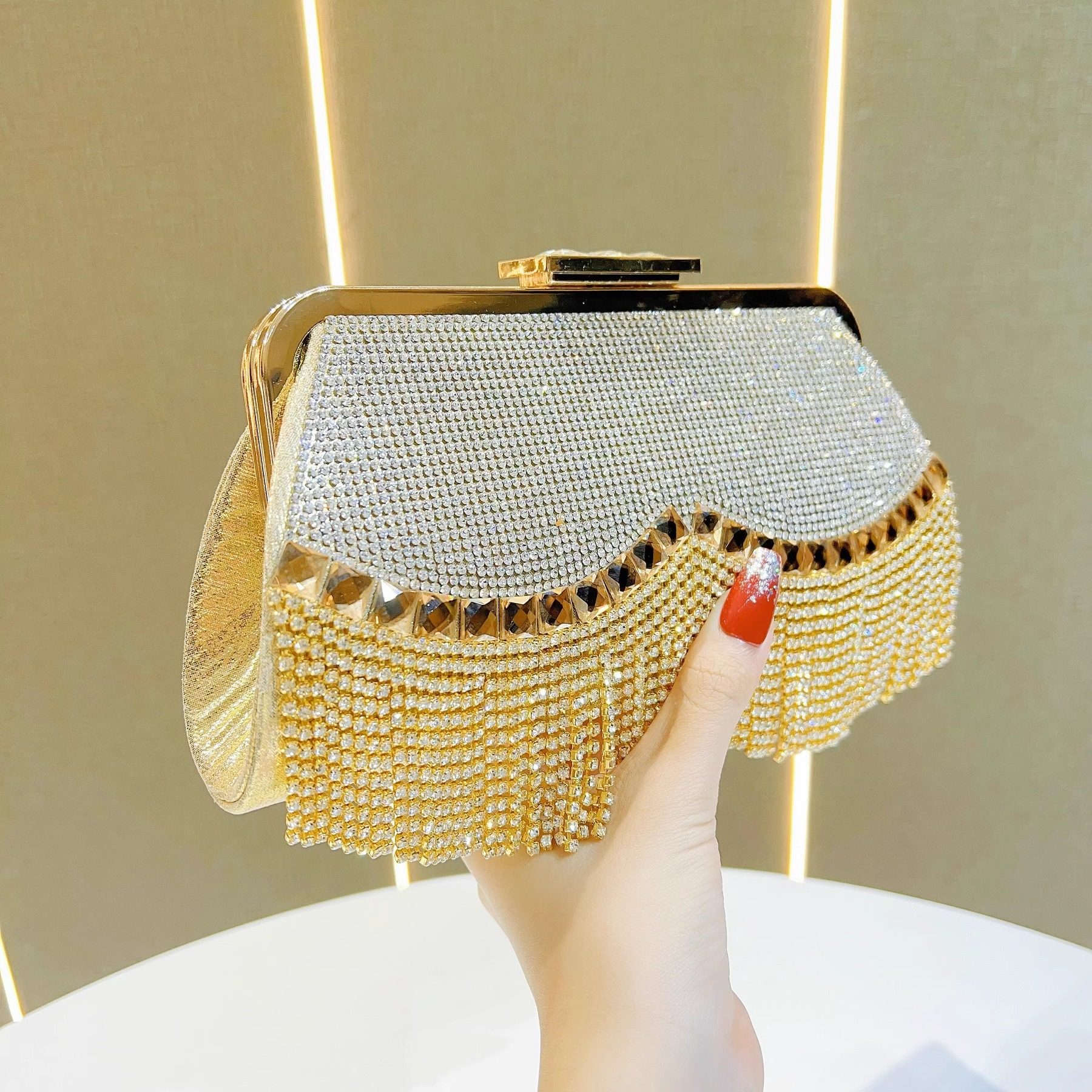 MissingYou新款流苏水钻包精致手拿包时尚斜挎包搭配礼服宴会包包