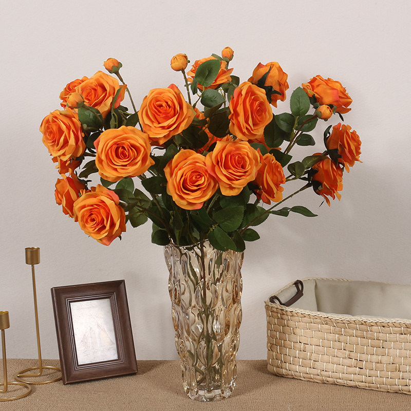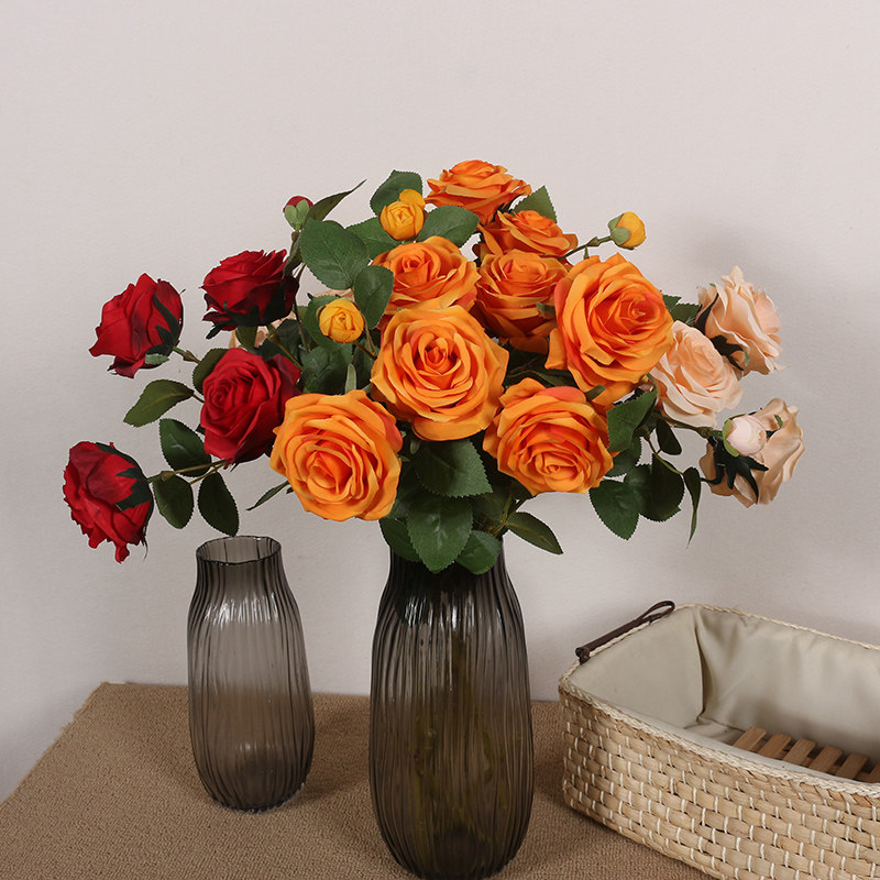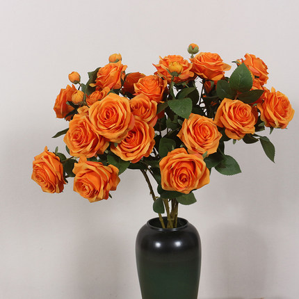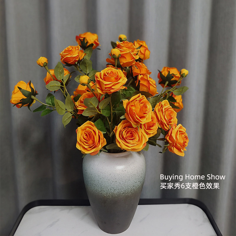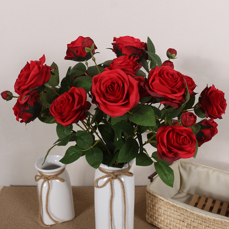5头玫瑰仿真玫瑰花 单支塑料花客厅高档落地摆件装饰花红色防真花