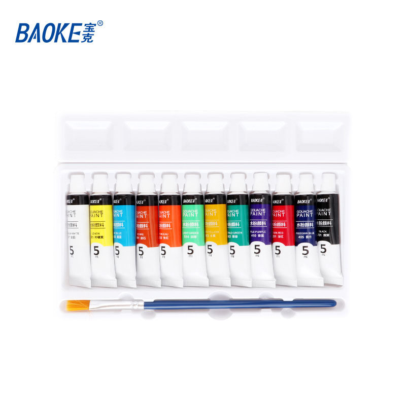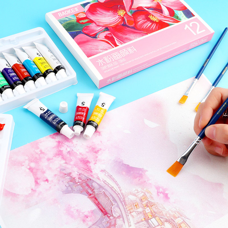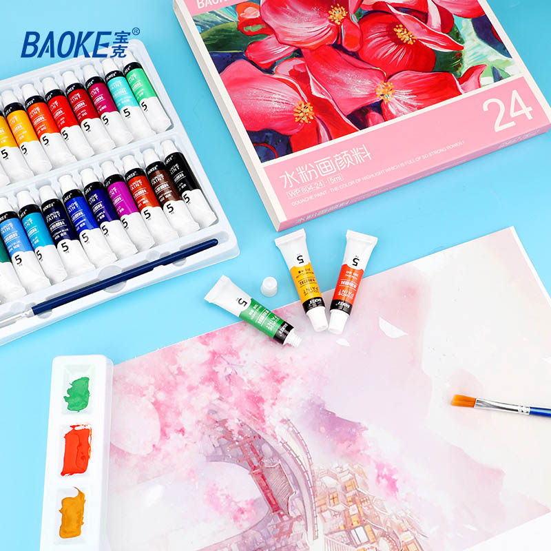 宝克WP804水粉画颜料12色18色24色初学者手绘水彩画学生绘画工具套装5ml儿童美术绘画色彩画画