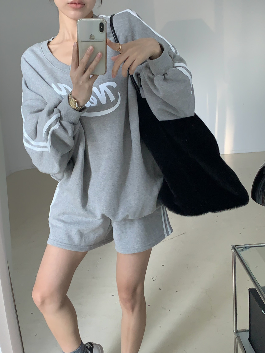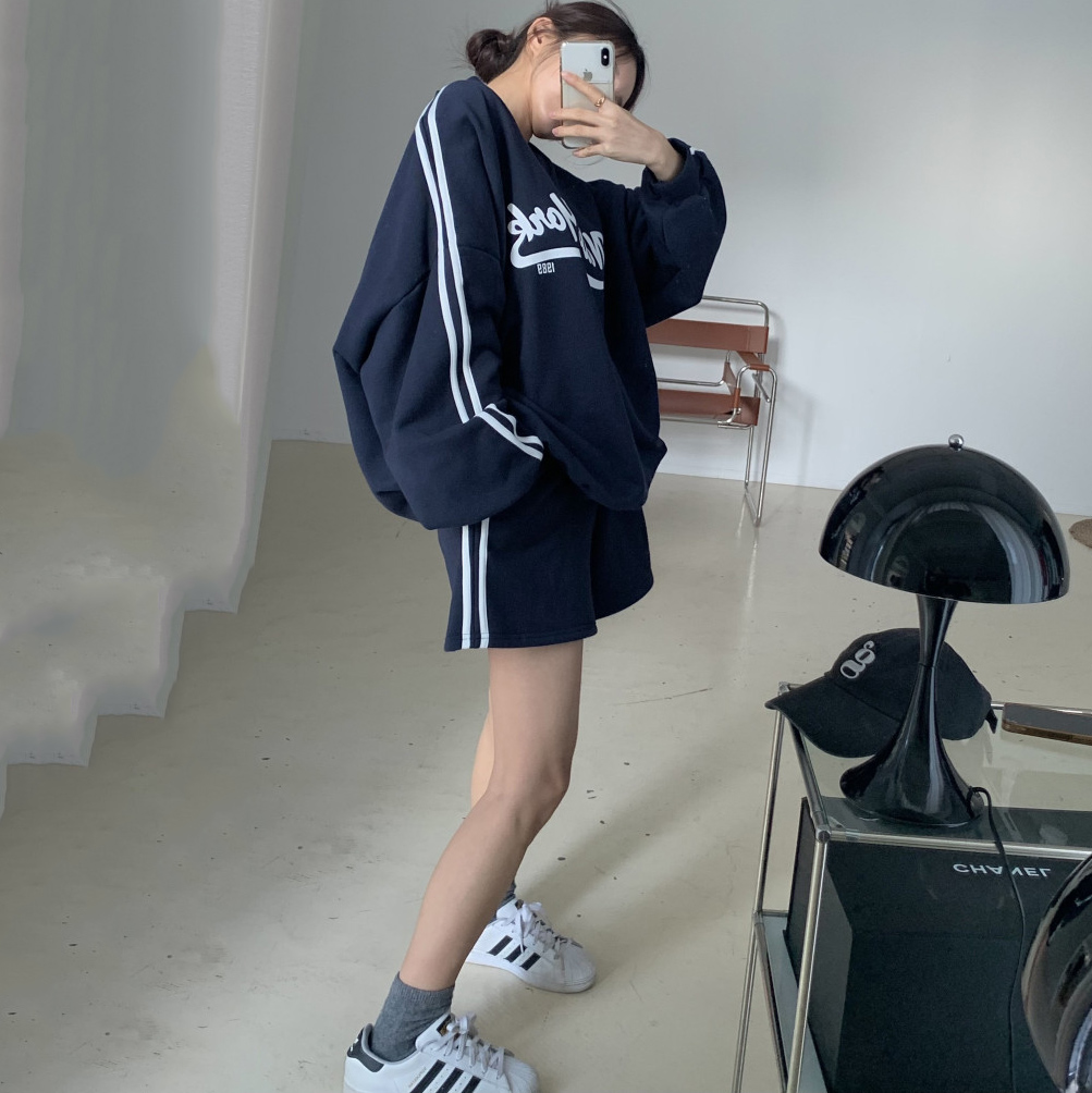 韩国东大门2024秋季女装休闲时尚美式v领卫衣运动短裤套装两件套