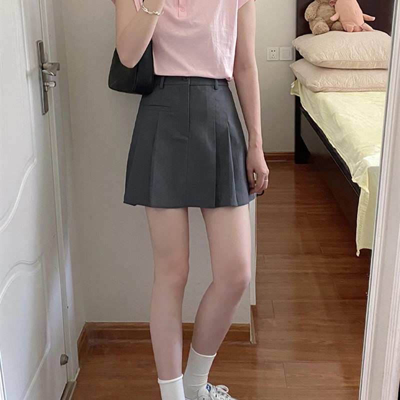 小个子灰色百褶半身裙女夏季大码高腰a字短裙百搭防走光西装伞裙