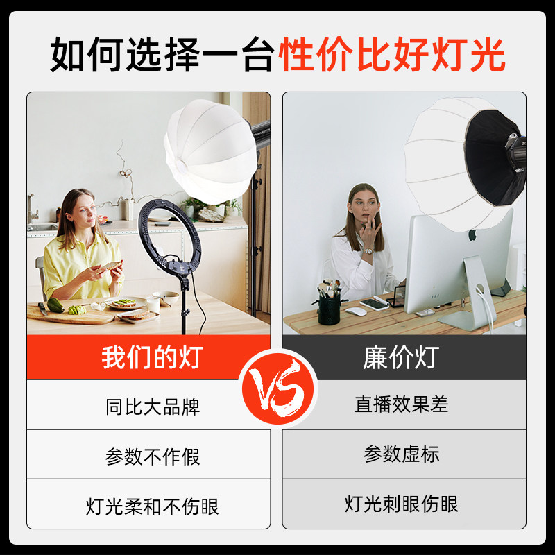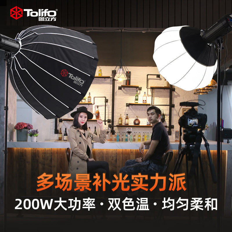 图立方实200W直播间补光灯主播美颜直播间氛围灯光服装人像拍摄打光专用拍照摄影灯室内影棚球形柔光箱太阳灯