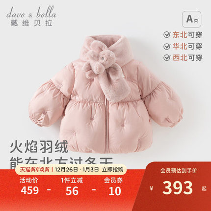 戴维贝拉女童三防羽绒服宝宝洋气上衣新款冬装儿童白鸭绒外套童装