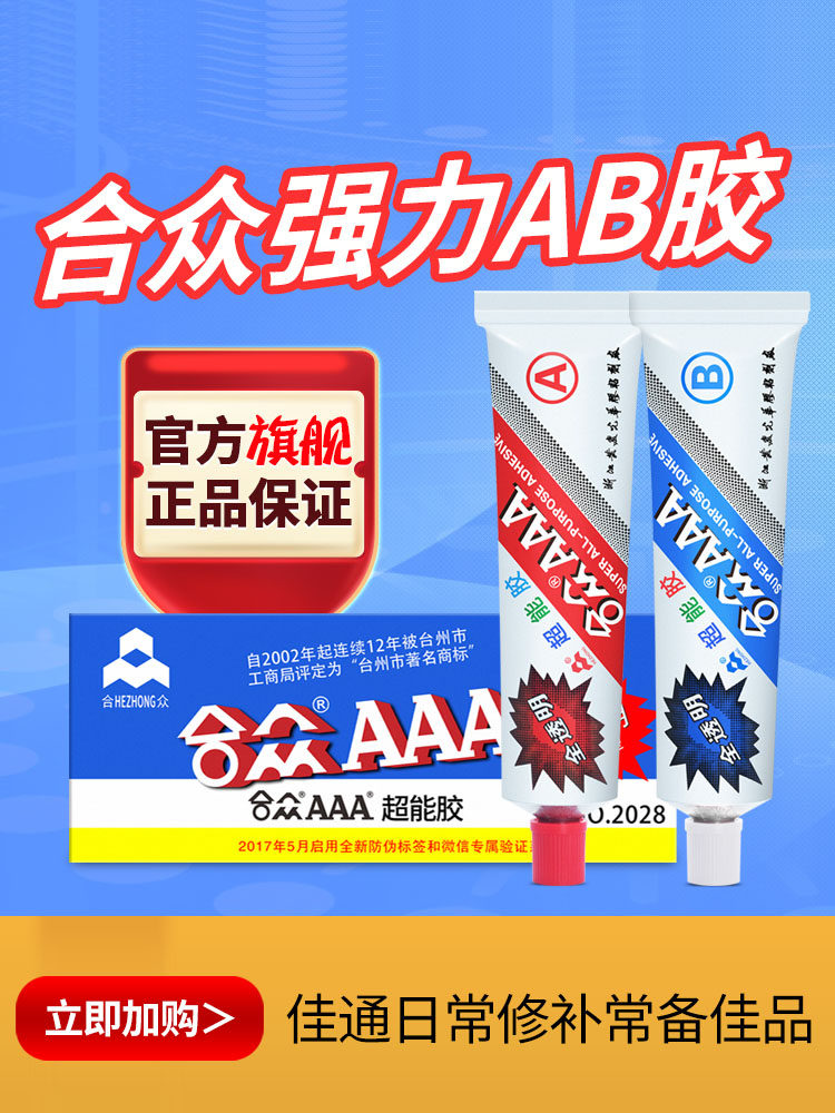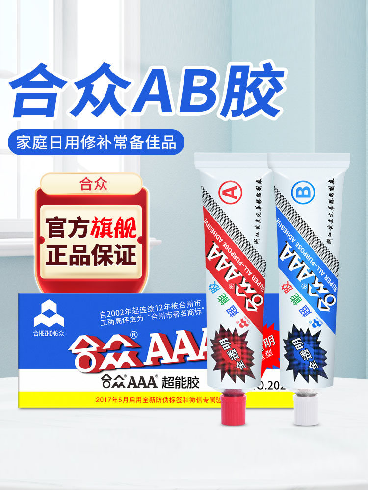 合众AAA超能胶环氧树脂全透明胶防水强力ab胶粘塑料饰品玻璃木头石材万能胶高强度耐高温耐黄变快干百得胶水