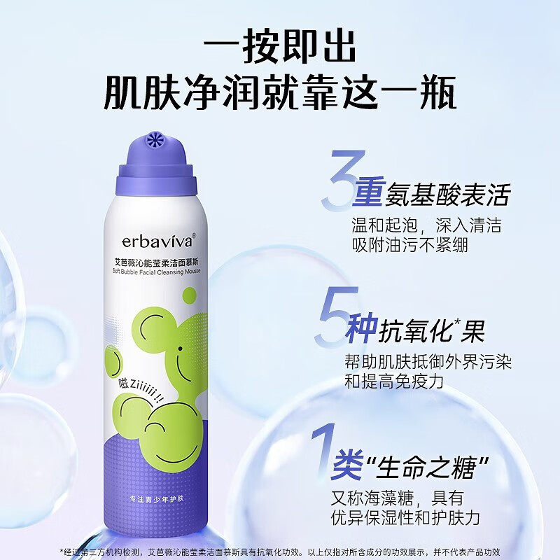 艾芭薇沁能洁面慕斯青春期少年氨基酸保湿清洁洗面奶学生洗脸泡泡
