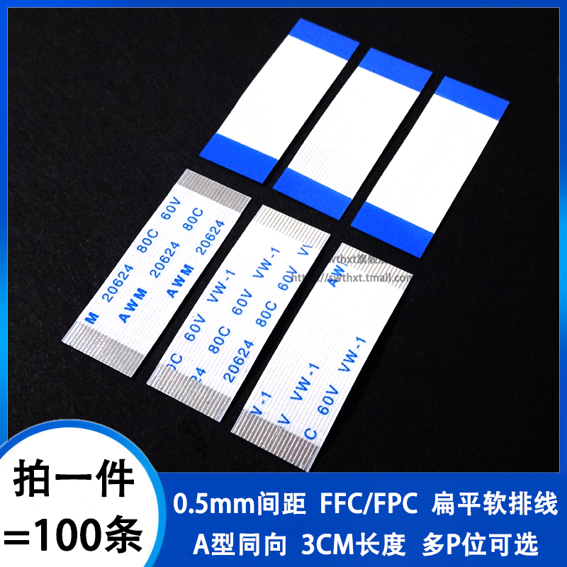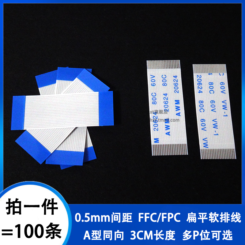 0.5mm间距同向3CM FFC/FPC软排线扁平线4/8/10/12/20/30/40/50pin