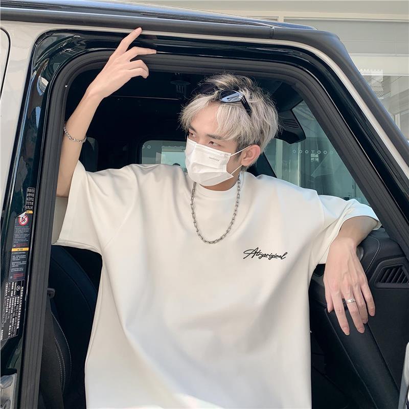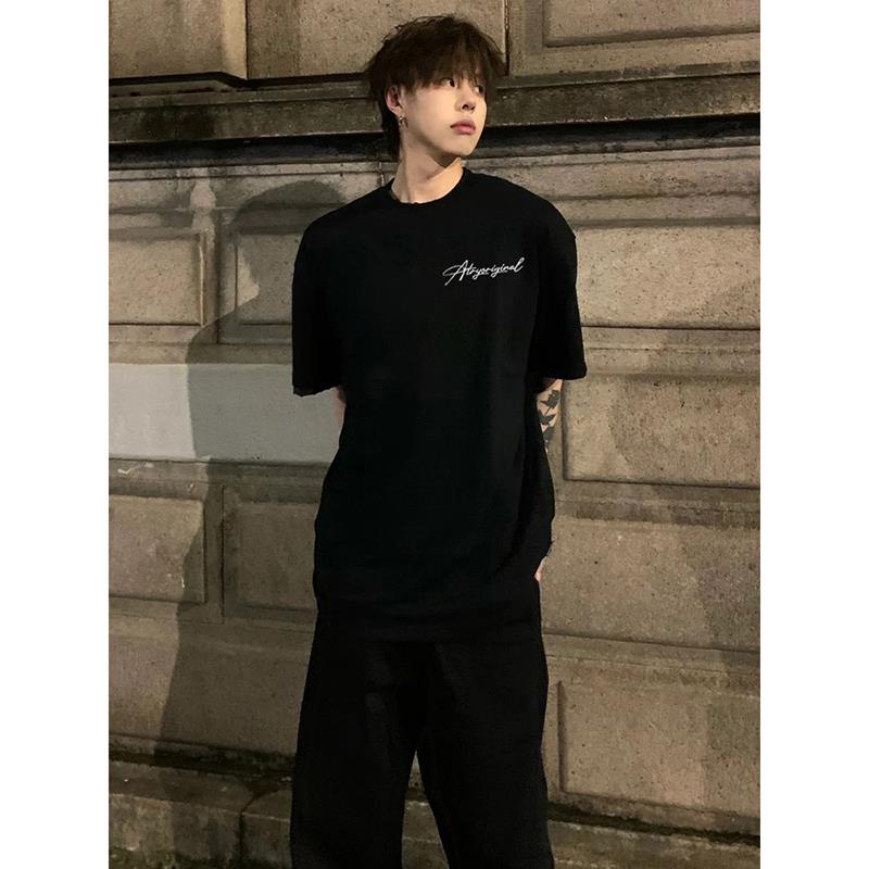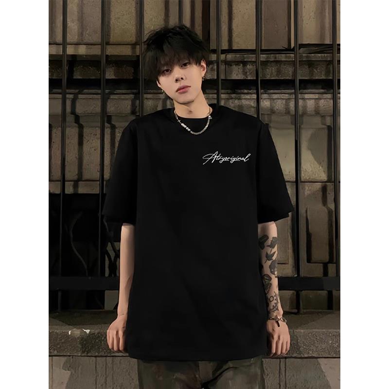 重磅黑色短袖t恤男2025新款纯棉美式简约男潮宽松版夏季痞帅半袖