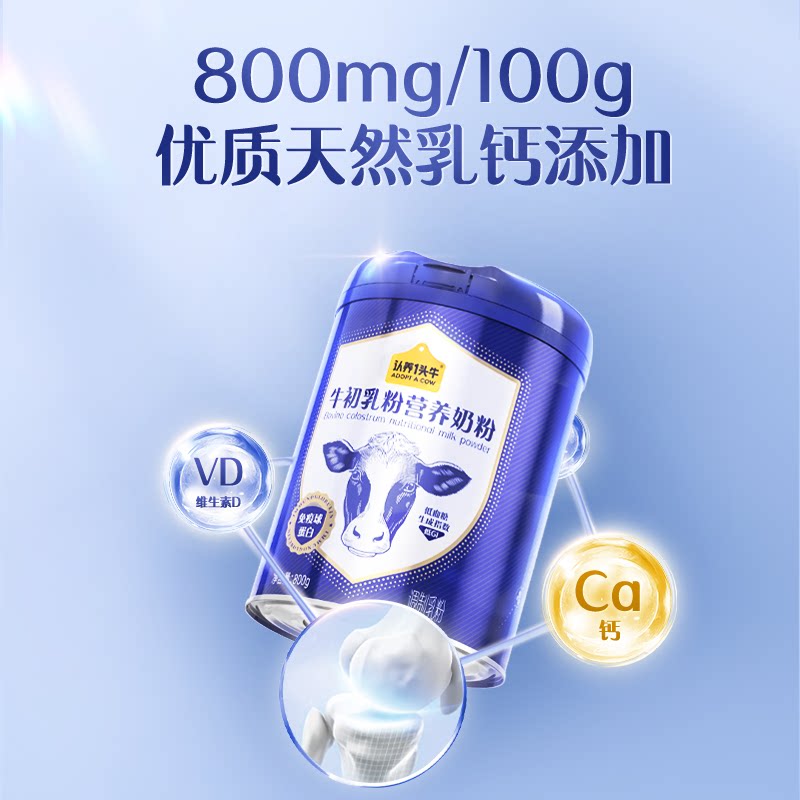 认养一头牛牛初乳中老年成人奶粉儿童免疫球蛋白全家800g礼盒装