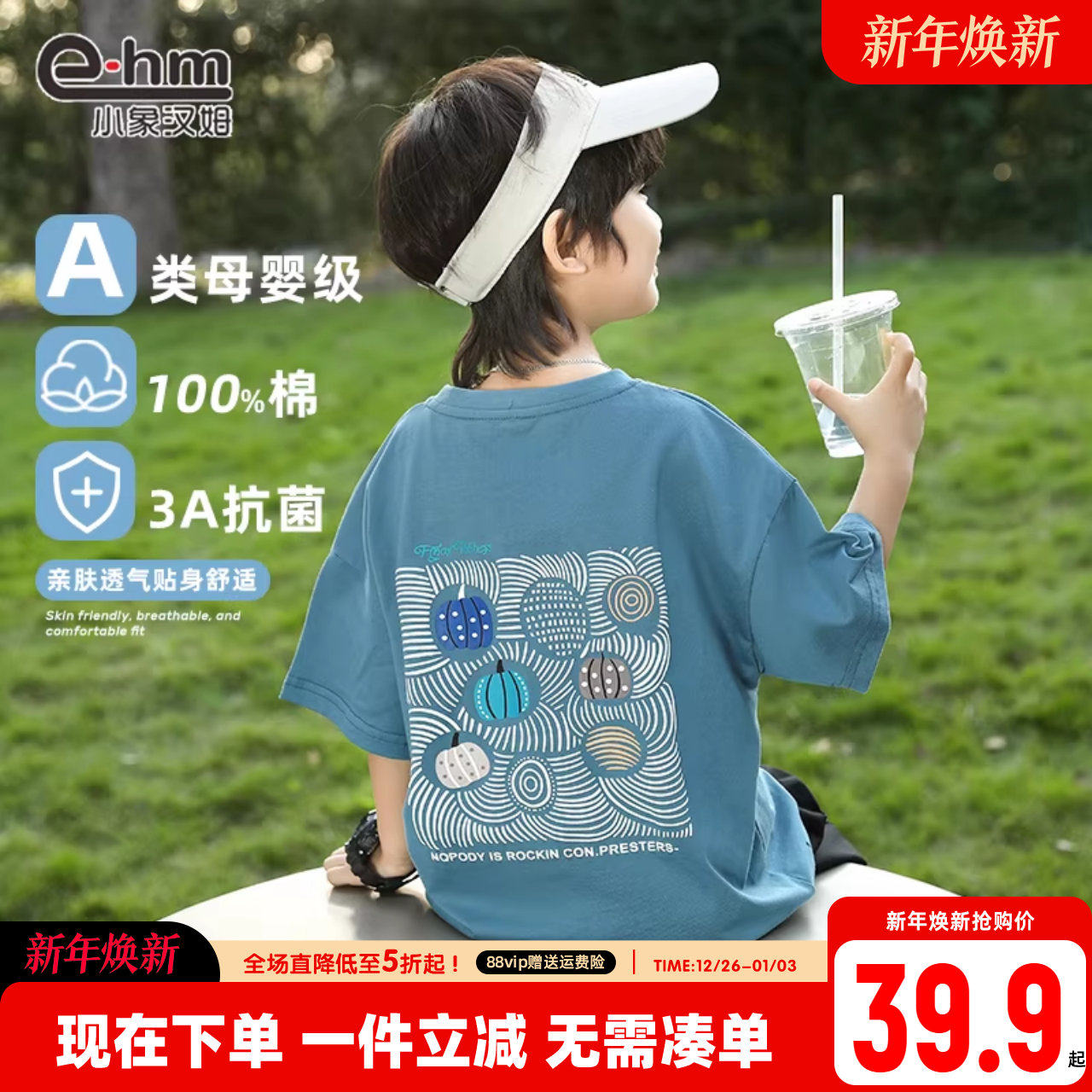 小象汉姆童装男童短袖T恤纯棉儿童夏天t恤衫2025夏新款中大童洋气