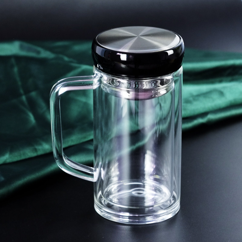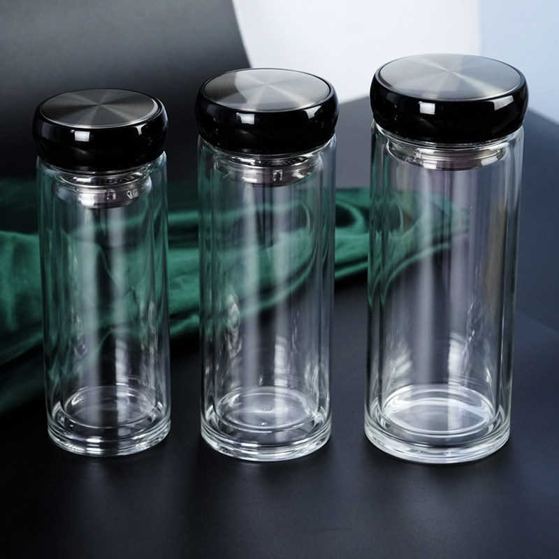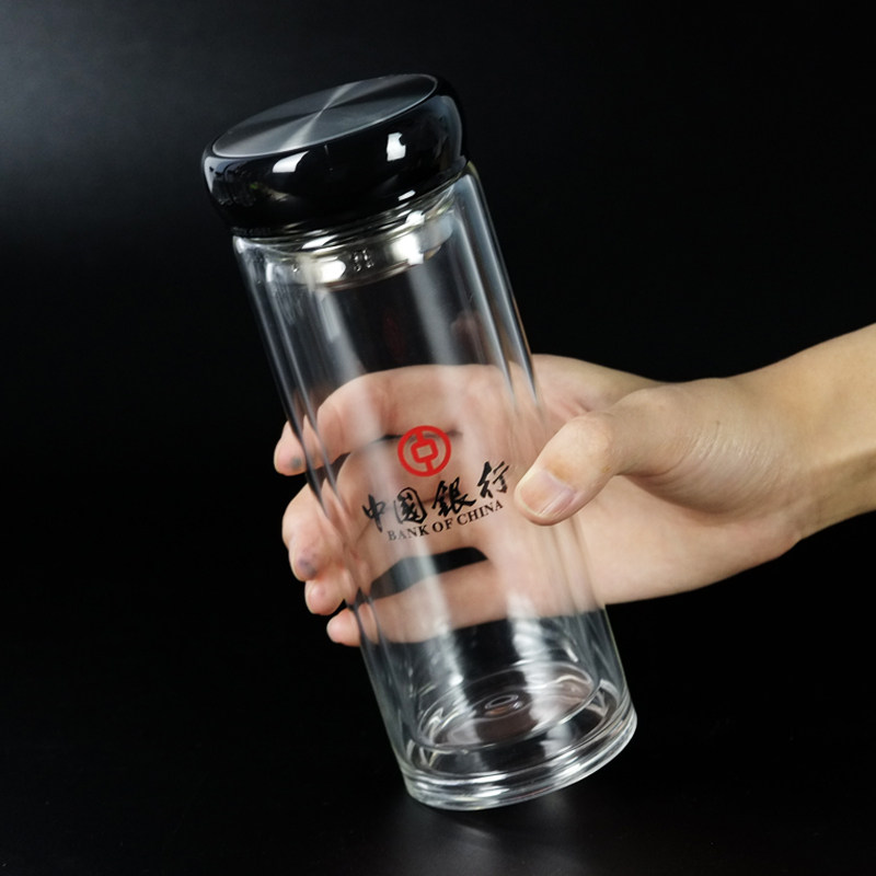 双层隔热玻璃杯简约办公室透明过滤泡茶水杯男女便携带盖杯子定制